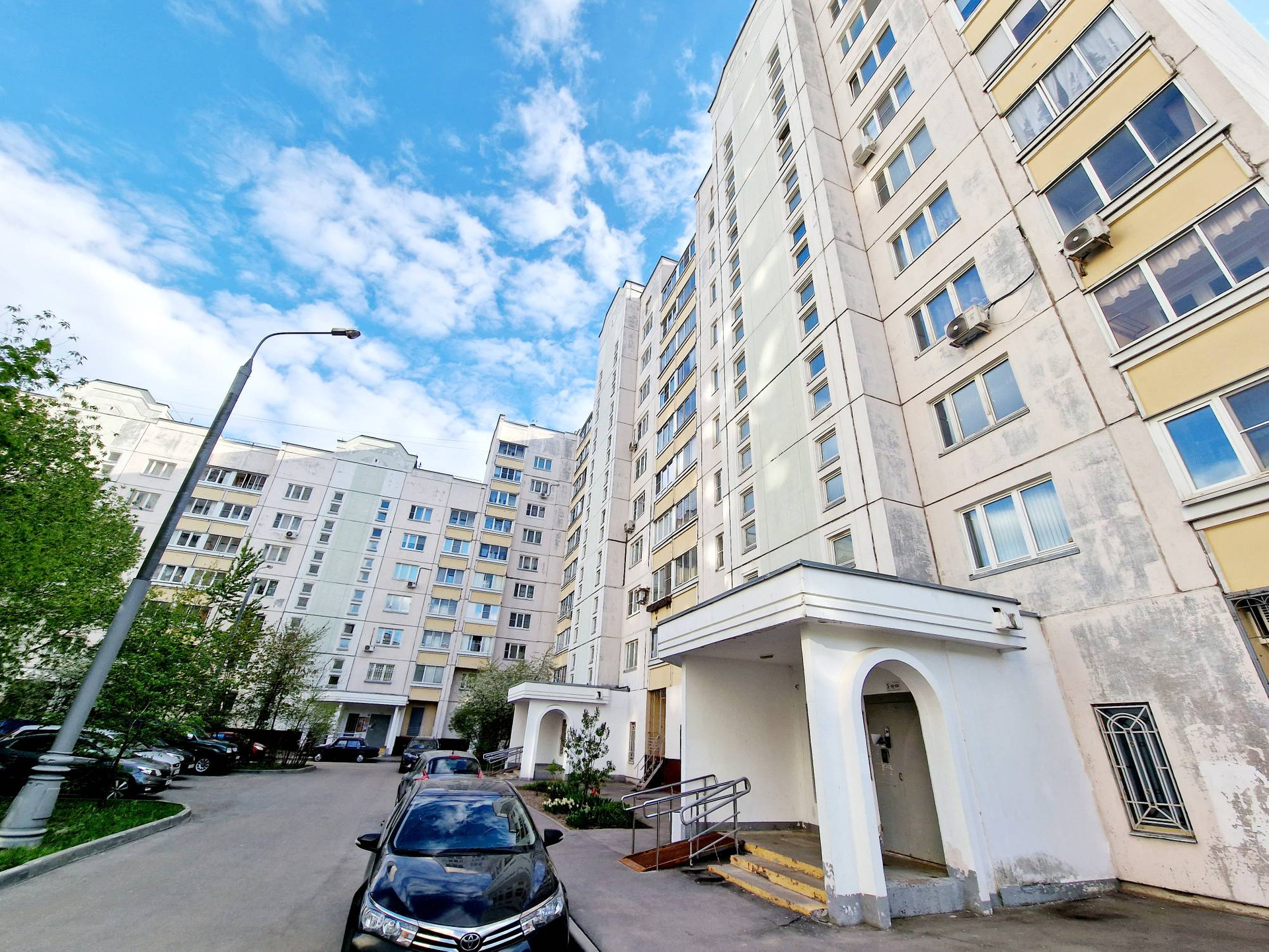 Чистый подъезд, два лифта - пассажирский и грузовой. Во дворе детская площадка,  множество парковочных мест. Основной плюс этого дома - он стоит во дворе, вдали от дорог и шума.