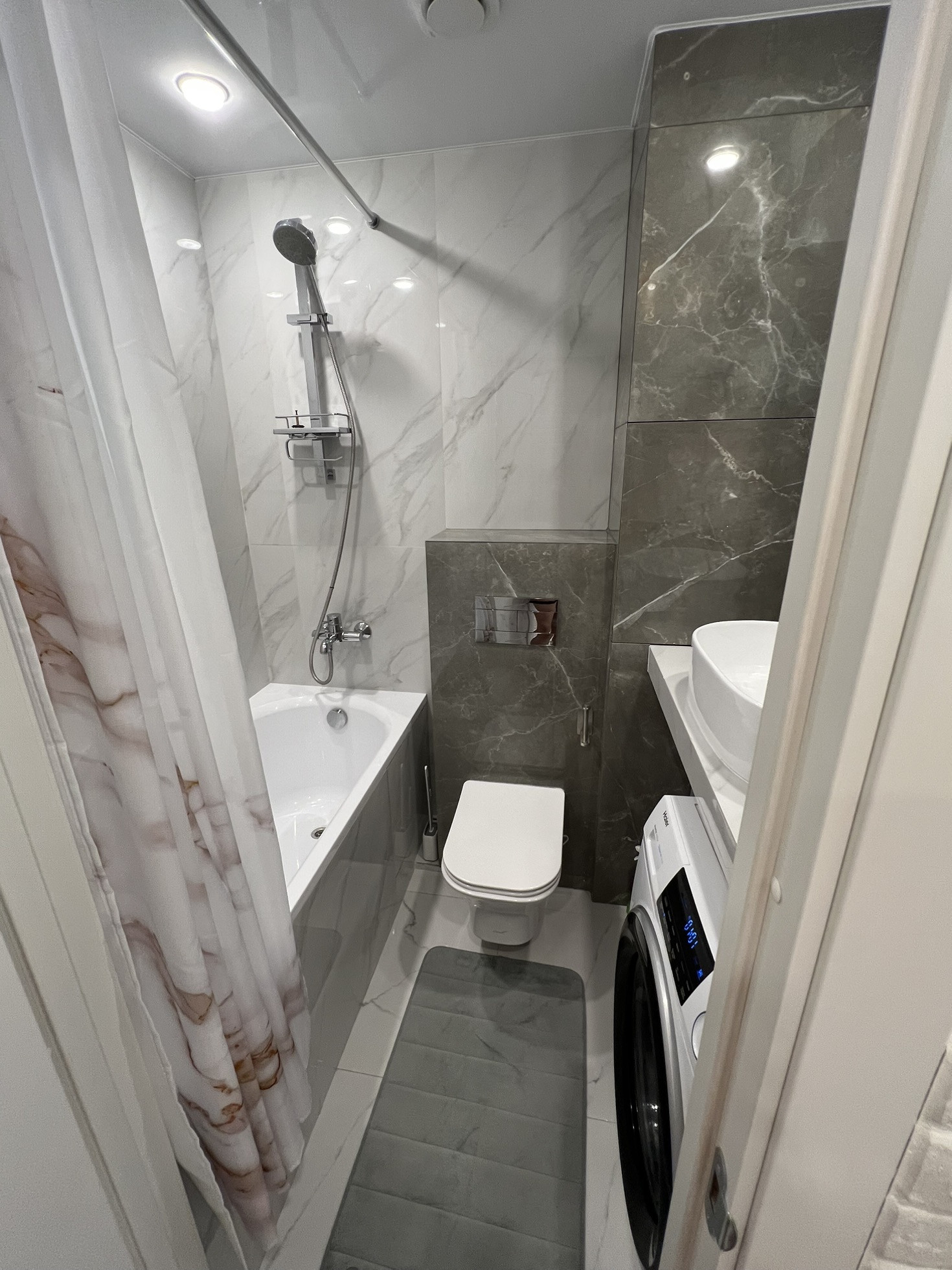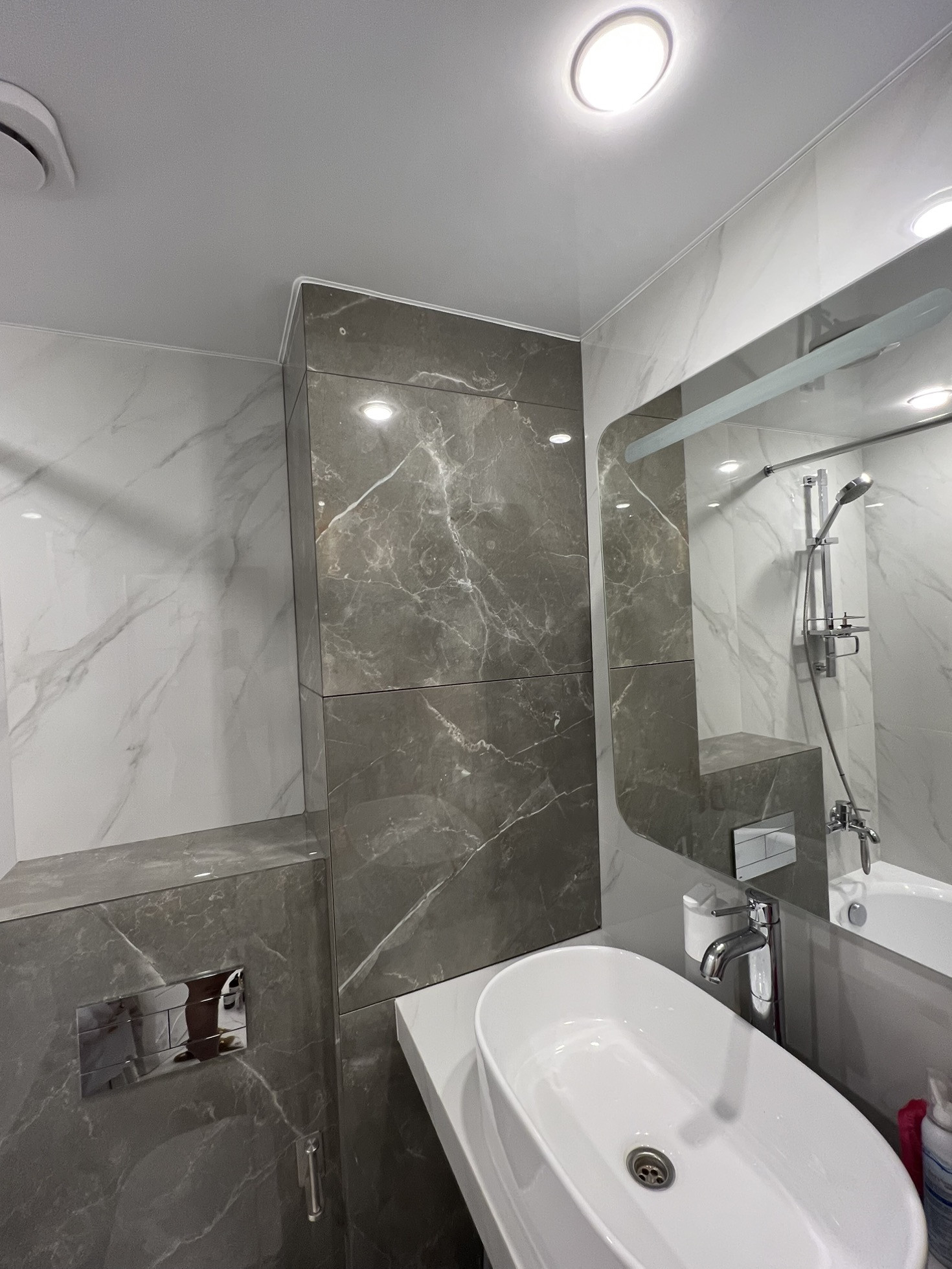 Ремонт делался для себя высокого качества. Немецкая сантехника, гранитная плитка, декоративный камень.