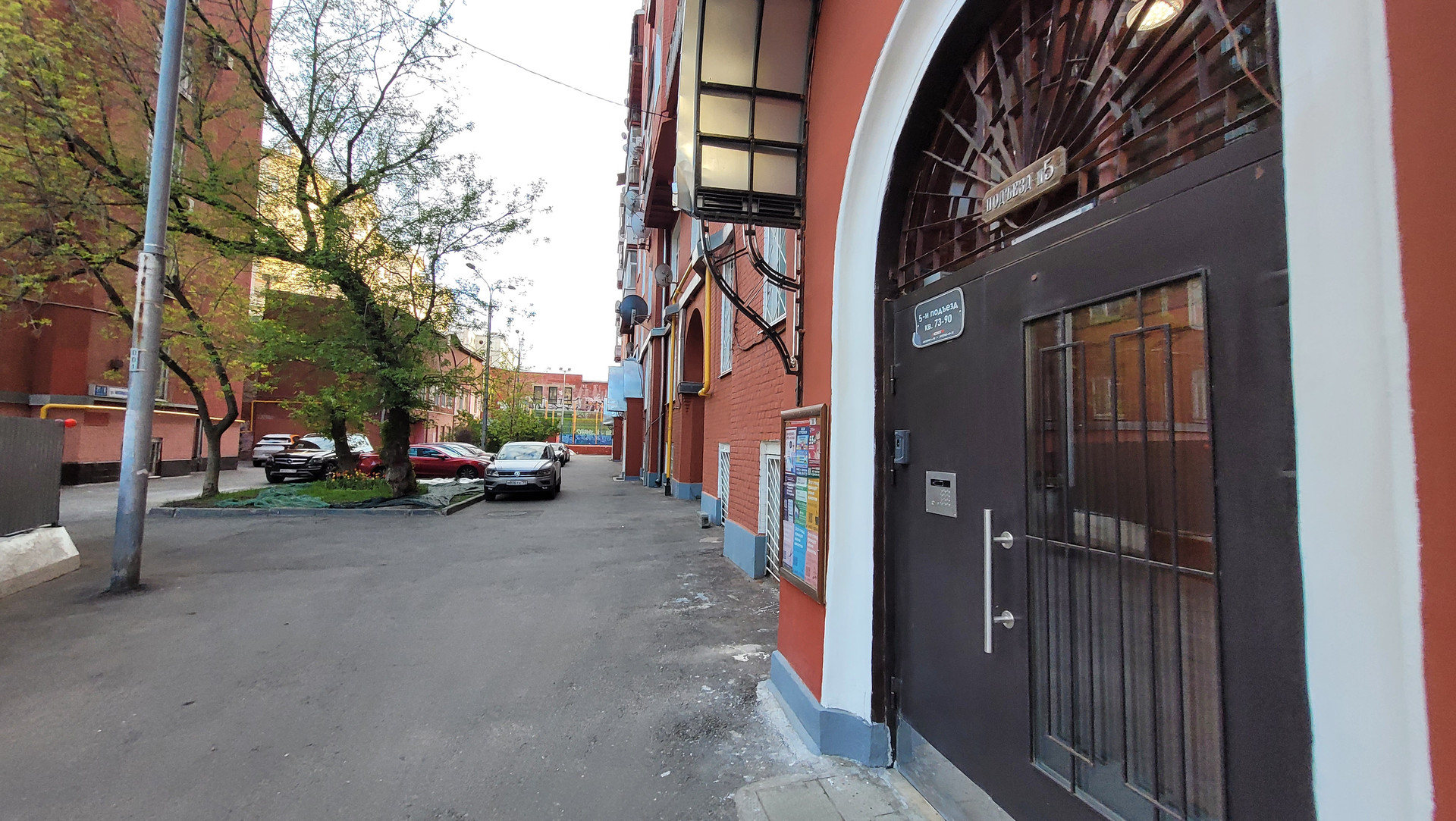 Очень чистый подъезд. Шлагбаум, парковка внутри двора.
