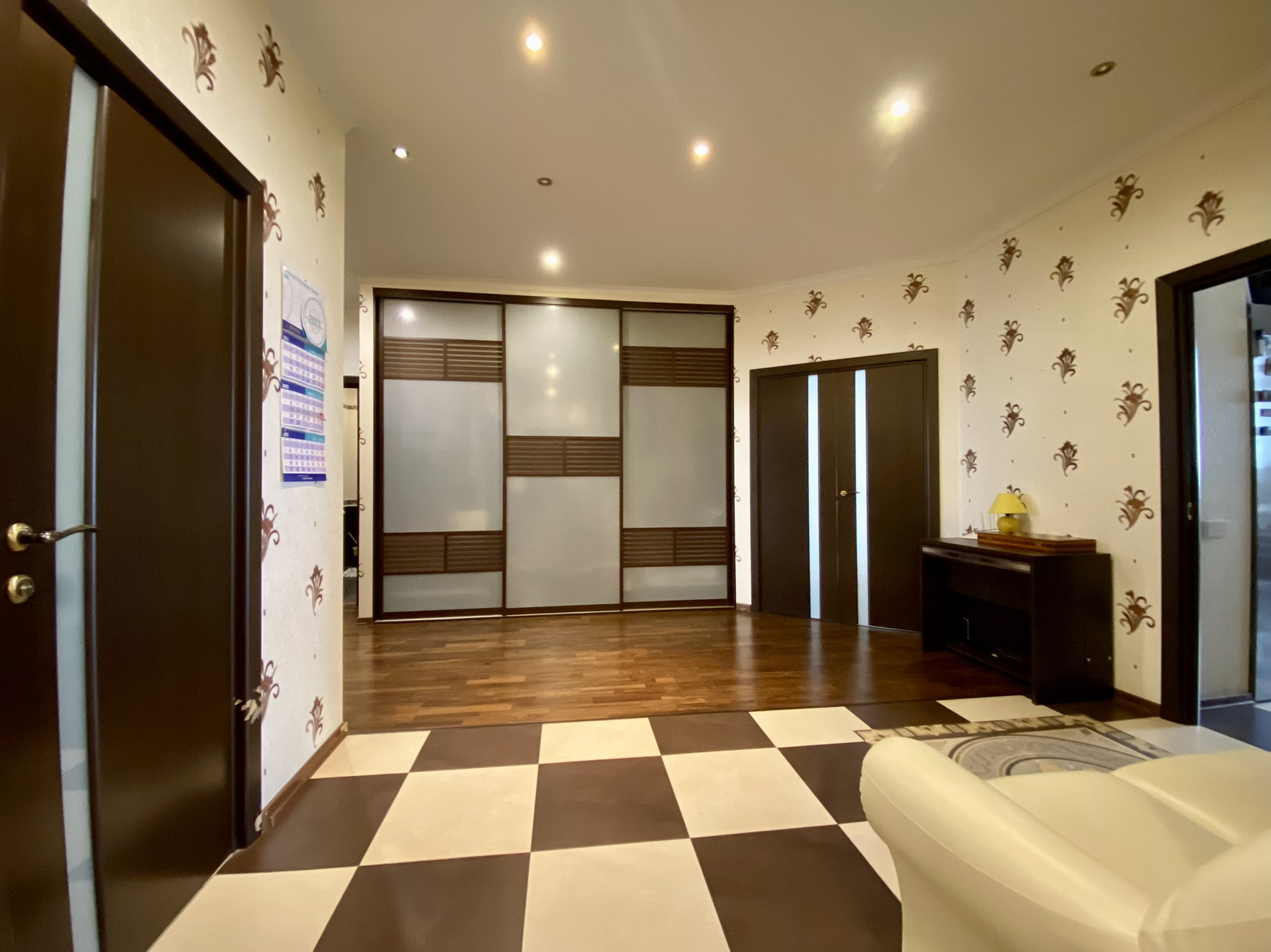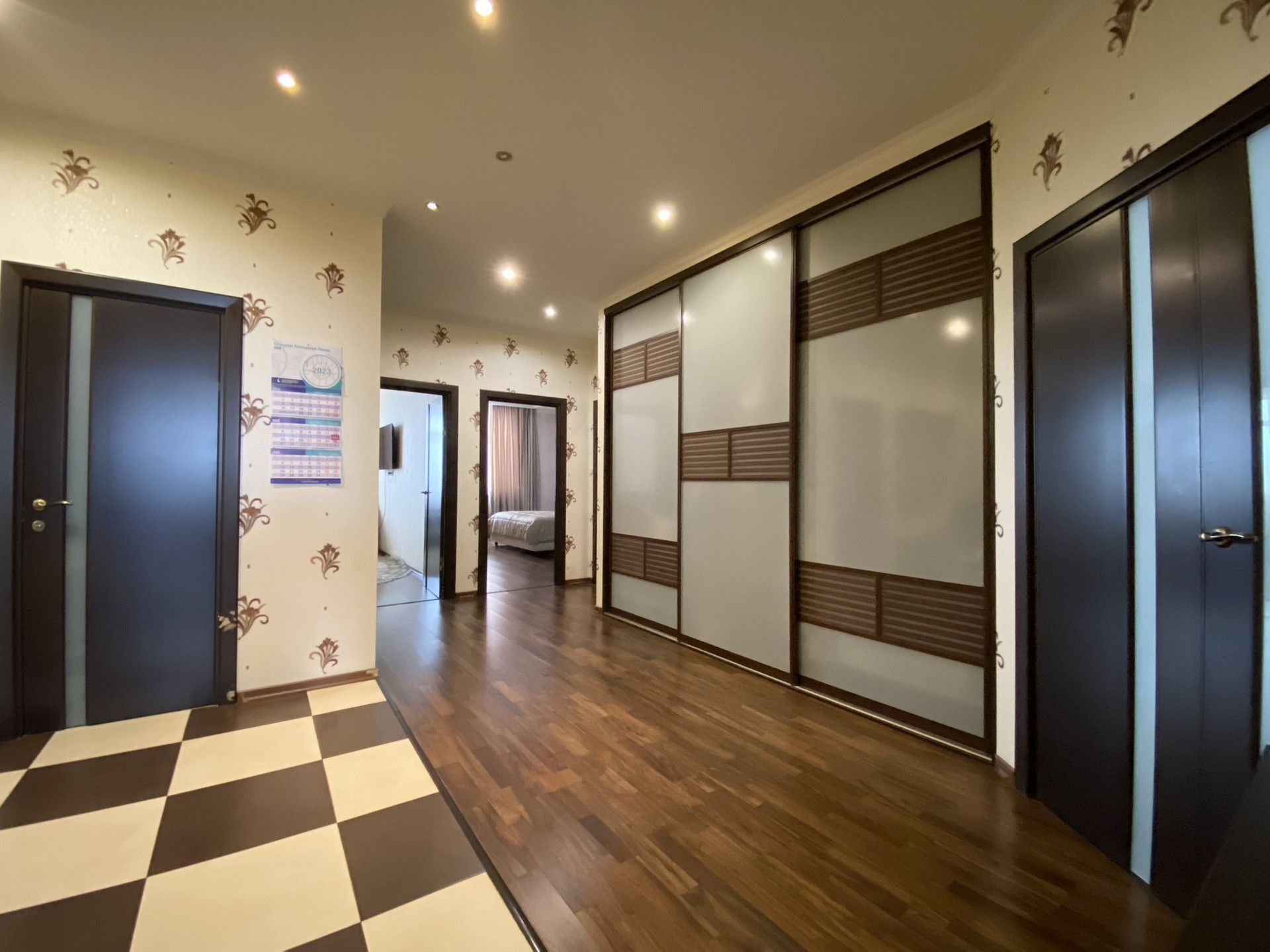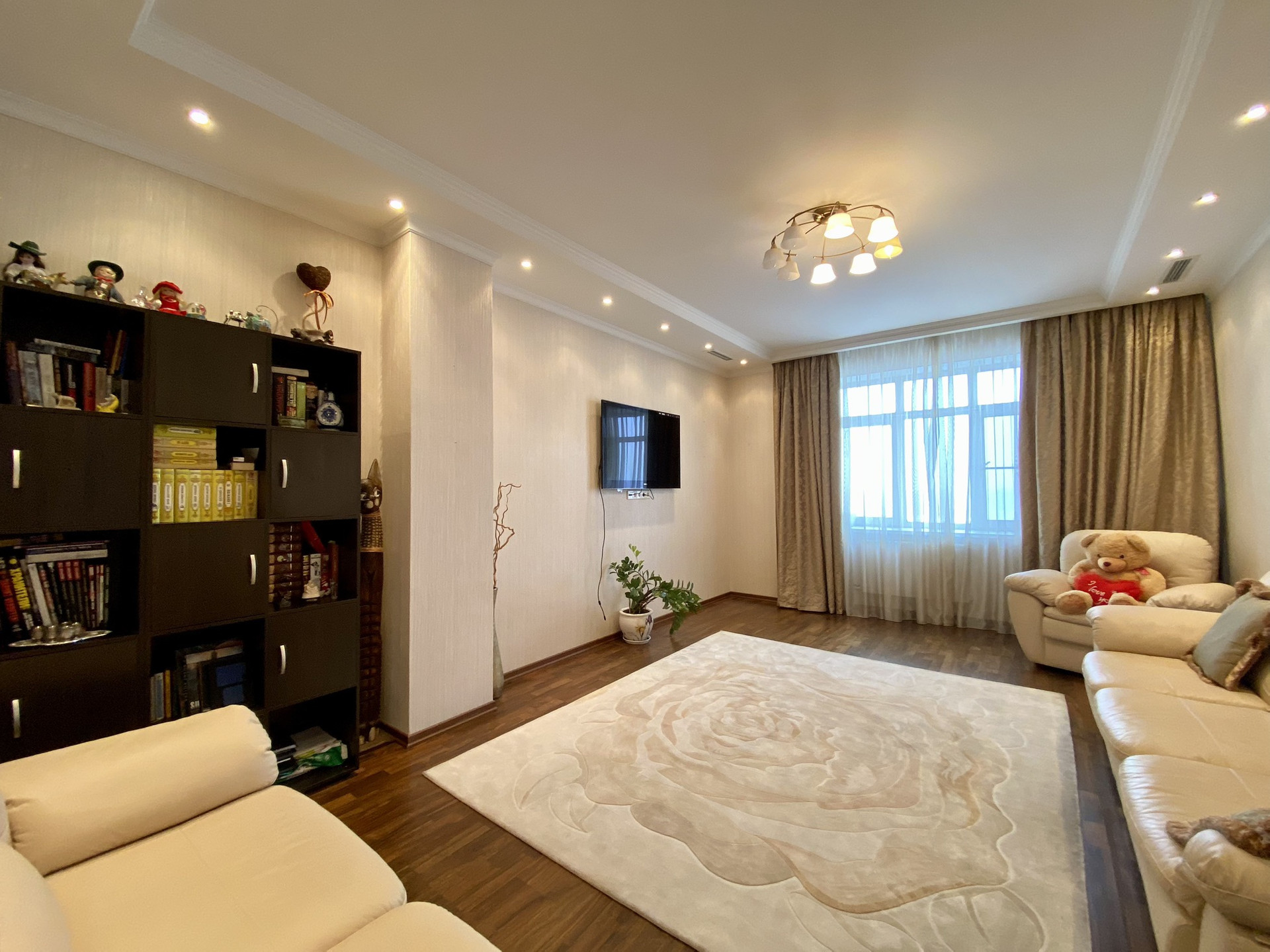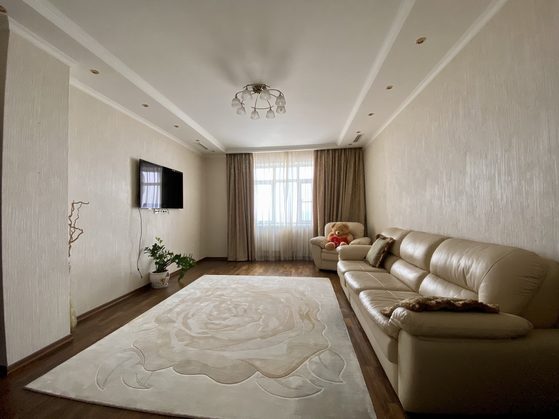 Три изолированные комнаты (26, 23 и 20 кв.м.), большая кухня 15 кв.м., два санузла, просторный холл с системами хранения. Высота потолков 3,2 м. Установлена приточно-вытяжная вентиляция Daikin с регулировкой температуры и очисткой воздуха.