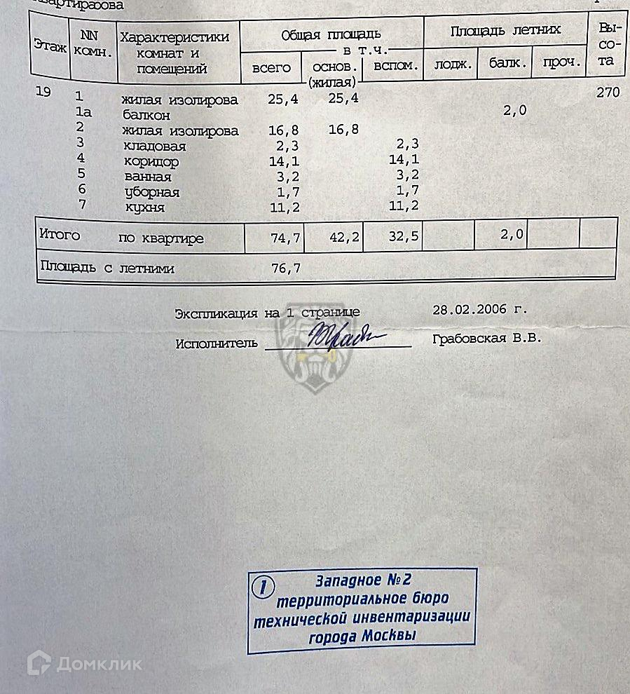Общая площадь 74.7 м2