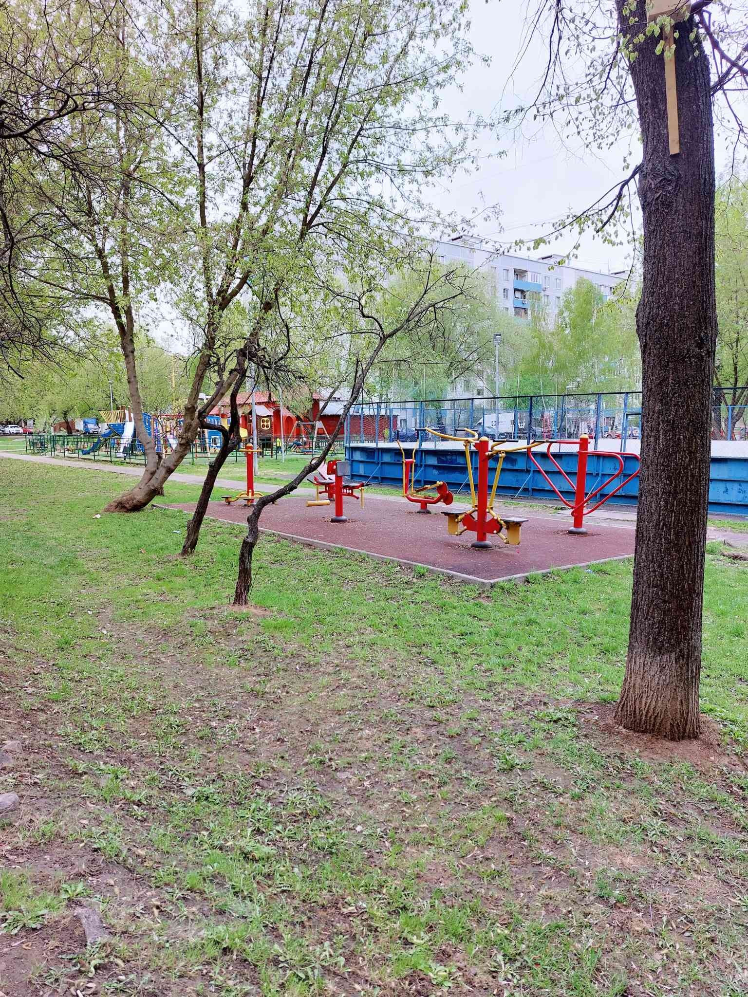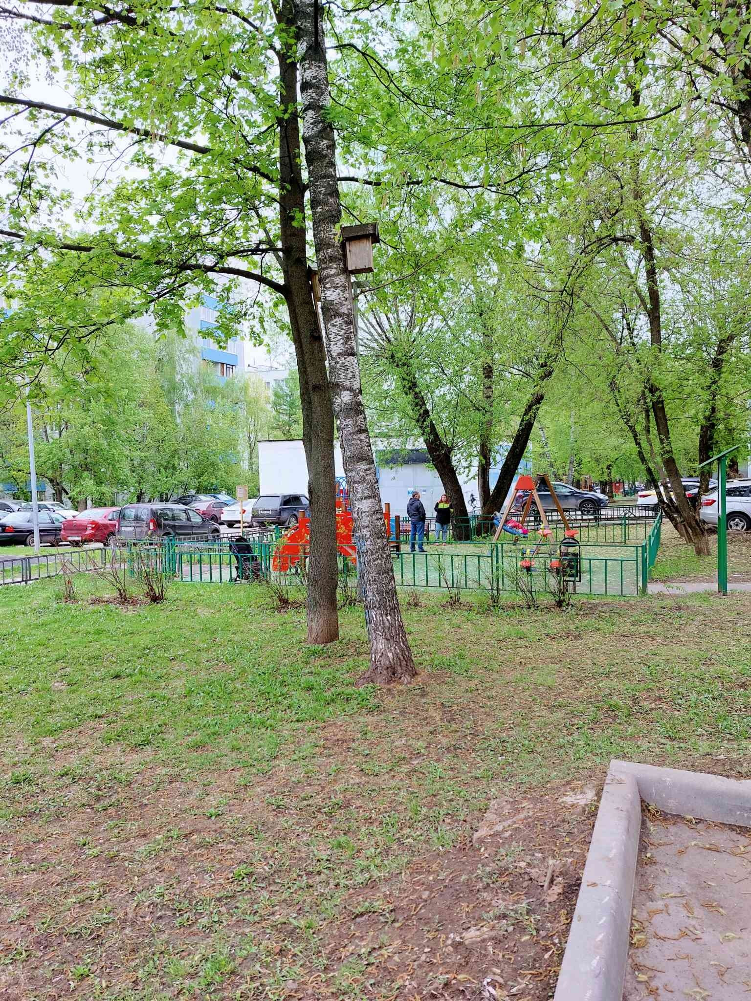Дом расположен во дворах, вдали от шумных дорог. Благоустроенный двор: есть несколько детских площадок,  спортивная площадка, много парковочных мест.