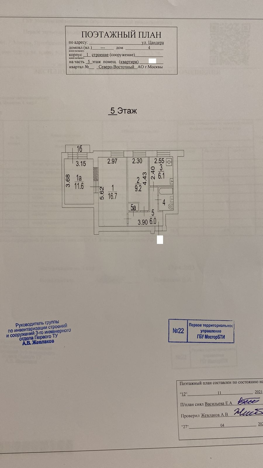 3-комнатная квартира, 53.5 м2, этаж 5 / 5, на продажу в Москве, улица Цандера, 4к1