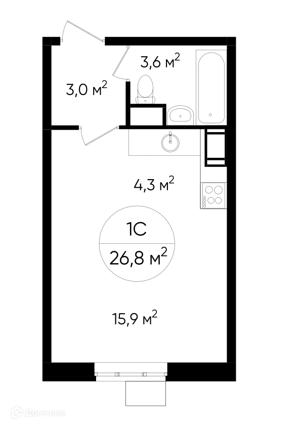 Общая площадь 26.8 м2