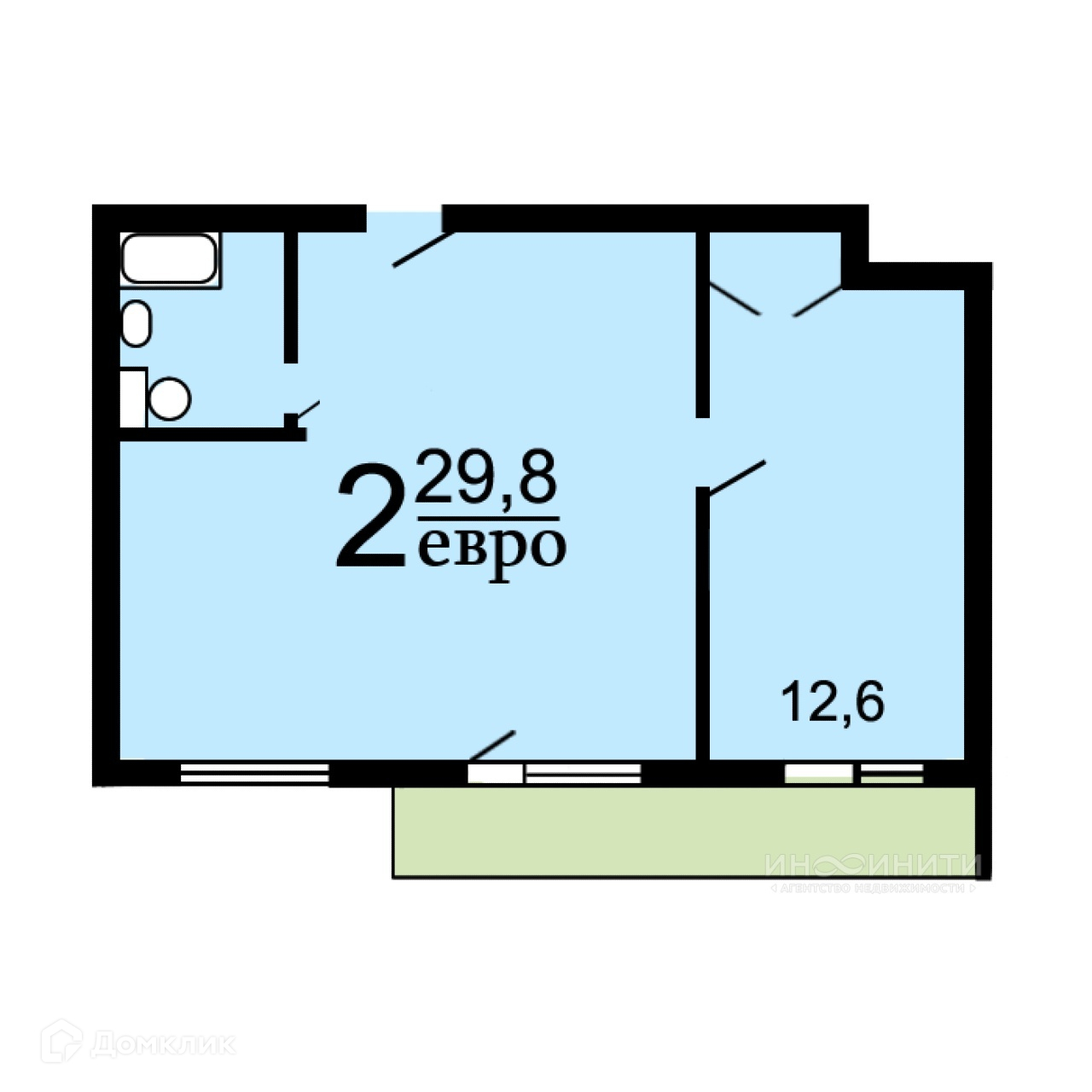 Жилая площадь 29.8 м2
