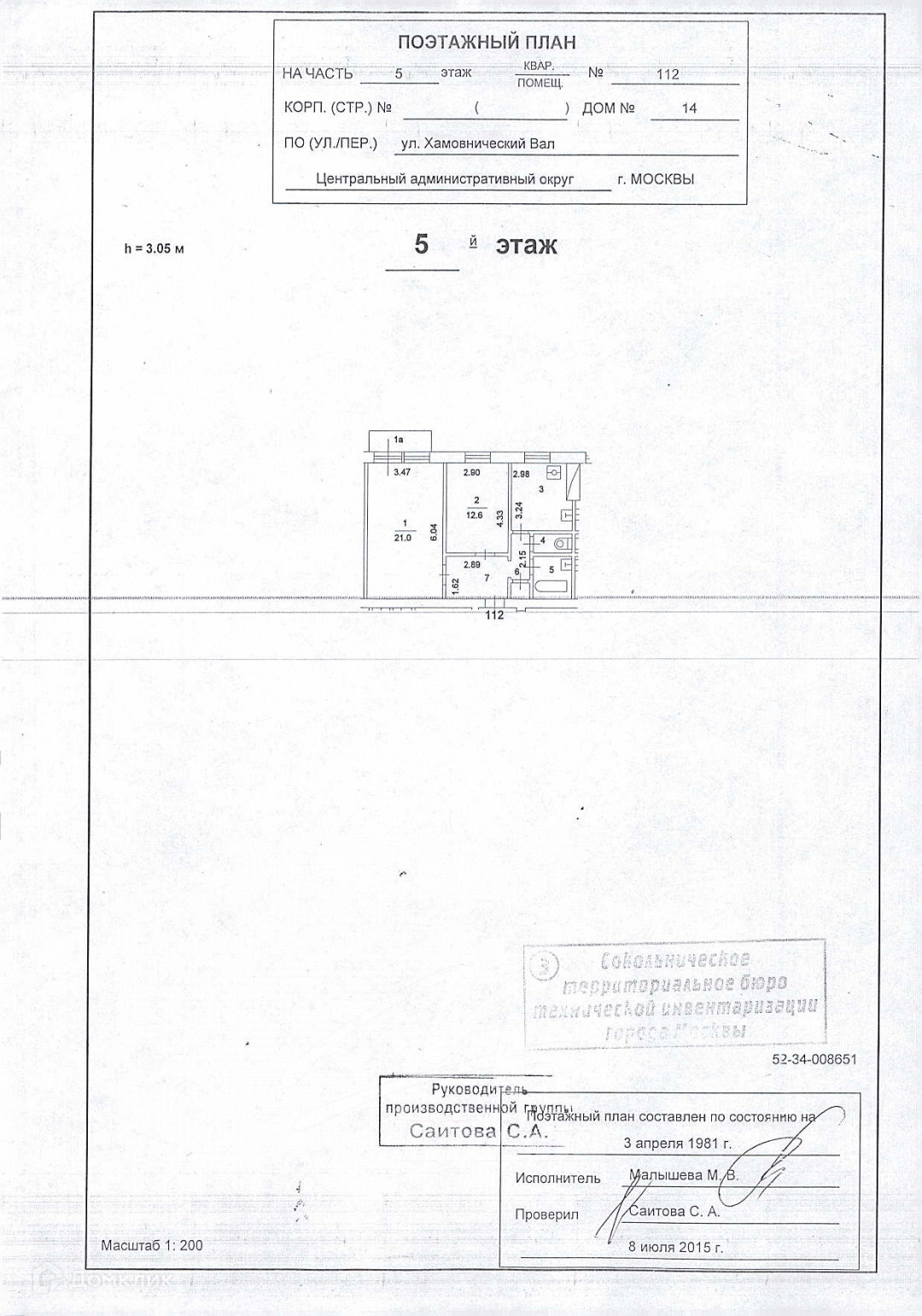 2-комнатная квартира, 55.6 м2, этаж 5 / 8, на продажу в Москве, улица Хамовнический Вал, 14
