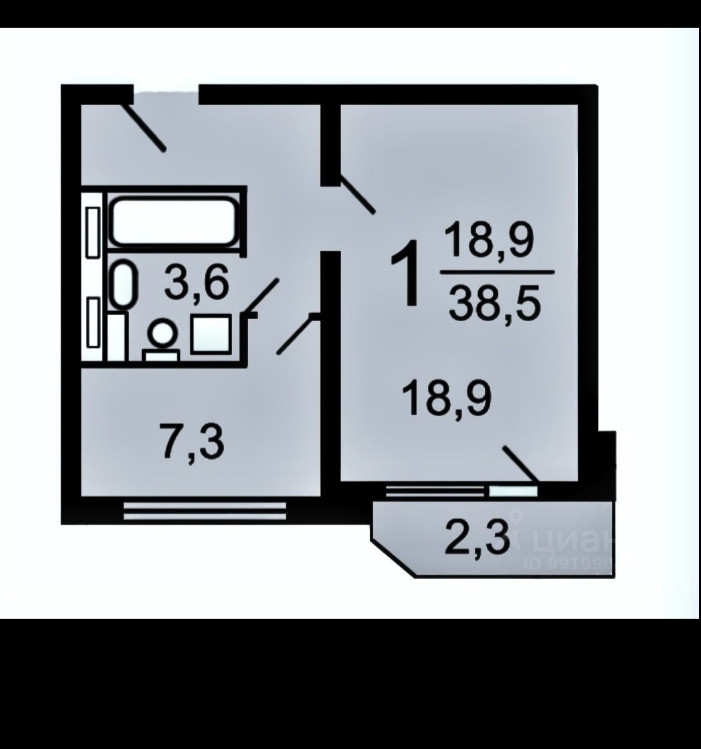 Общая площадь 38 м2