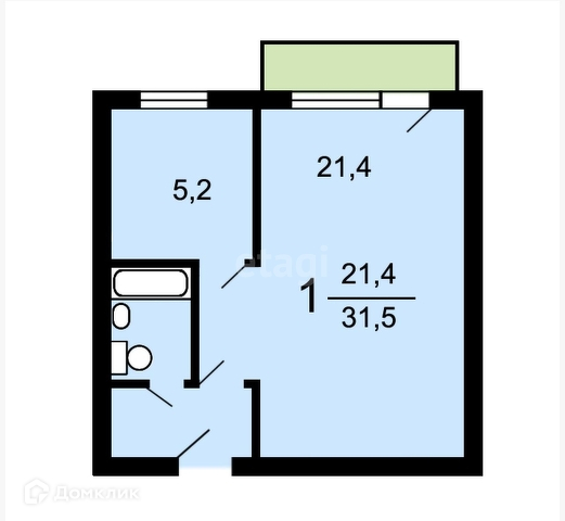 Общая площадь 31.5 м2