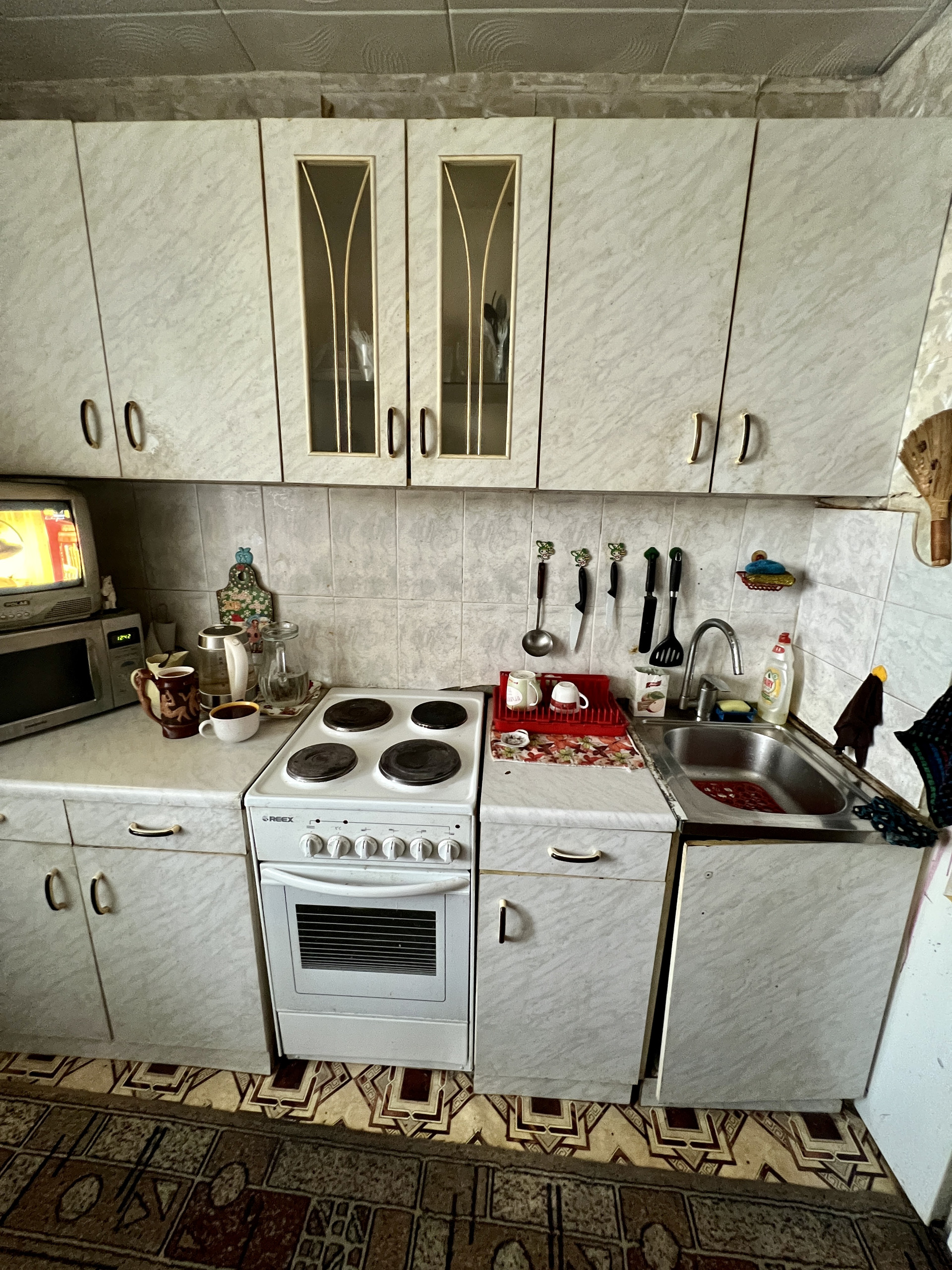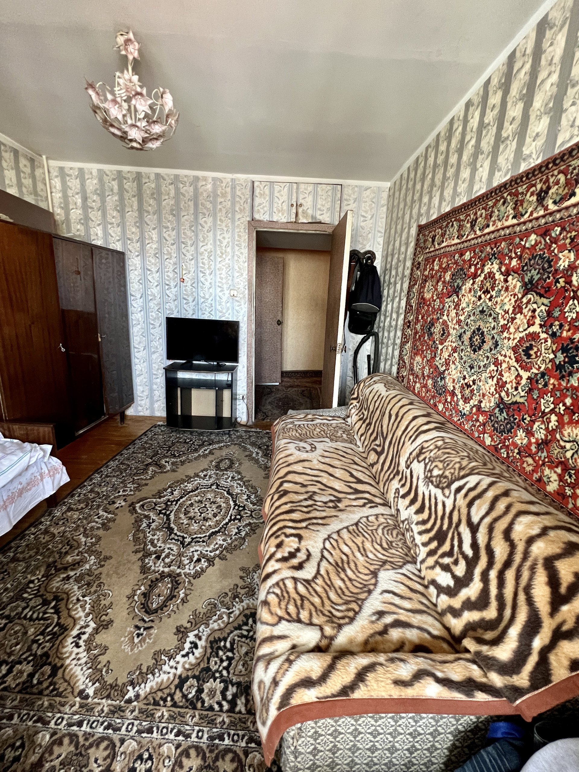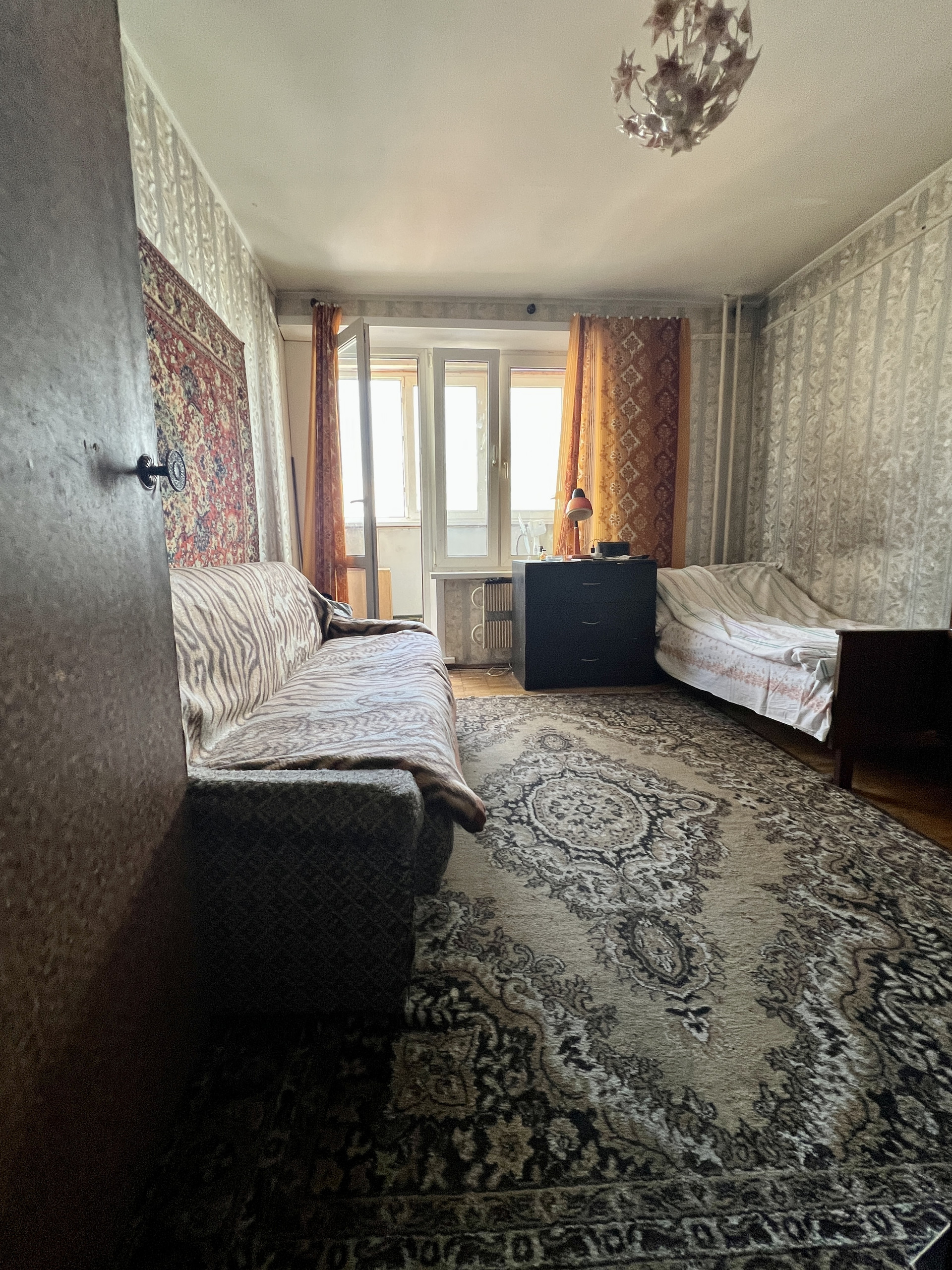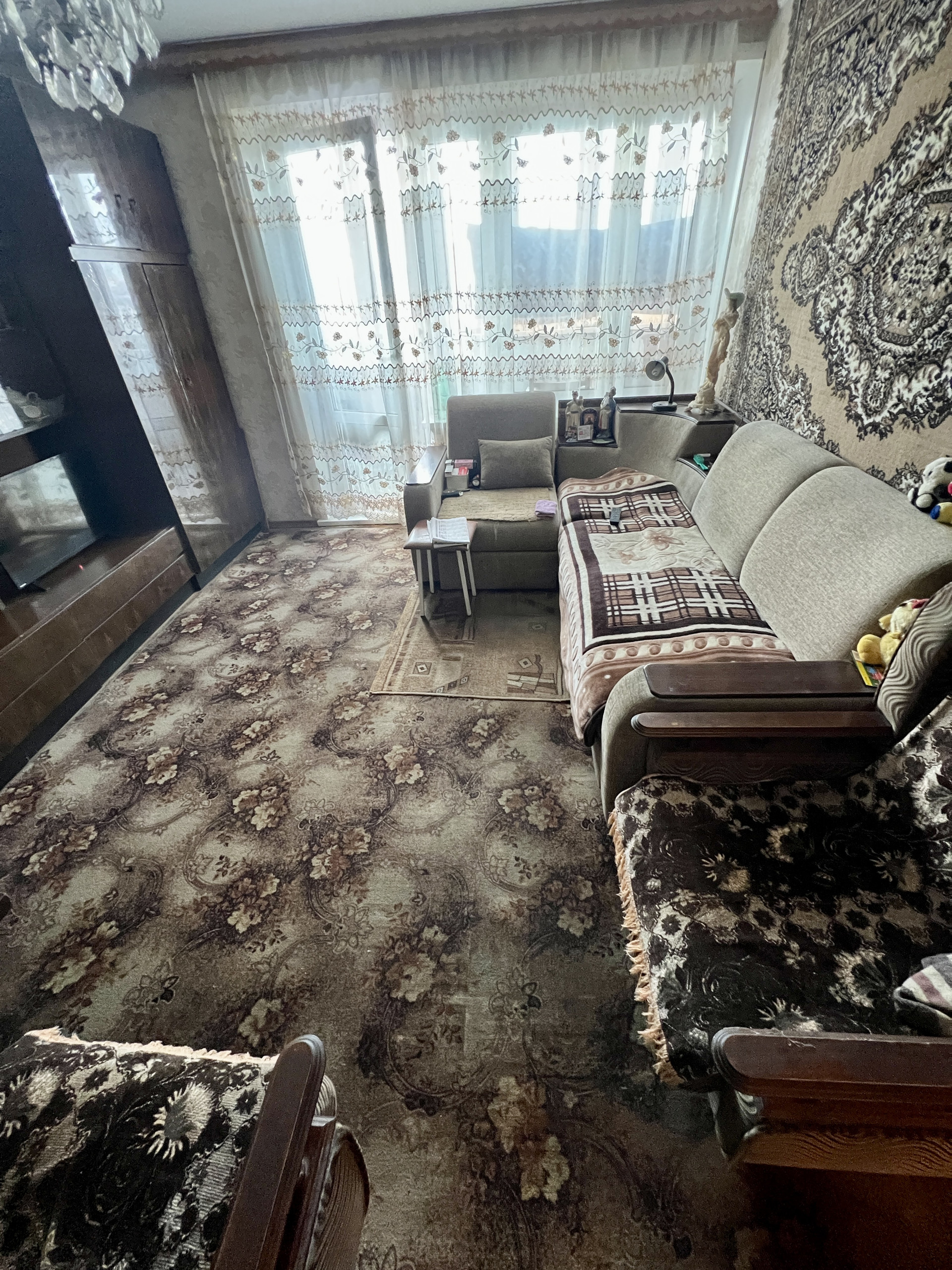 Состояние хорошее, но будет рада ремонту, чистый и ухоженный подъезд, прекрасные соседи, тихий двор. Окна на две стороны -во двор и на улицу с парком.