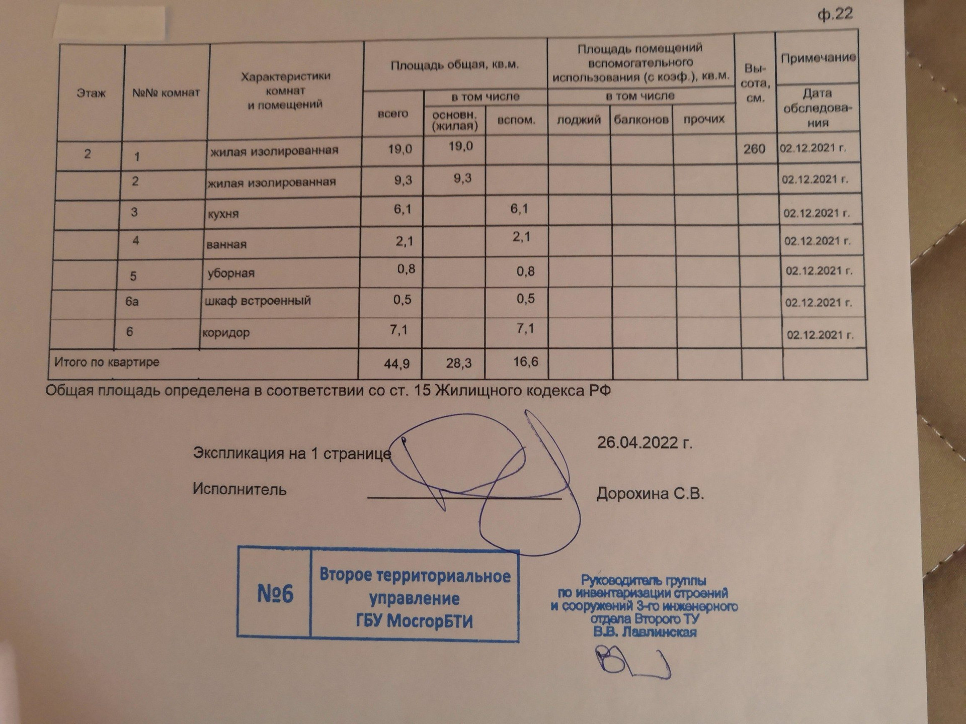 Общая площадь 44.9 м2
