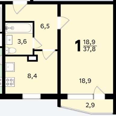 Общая площадь 39 м2