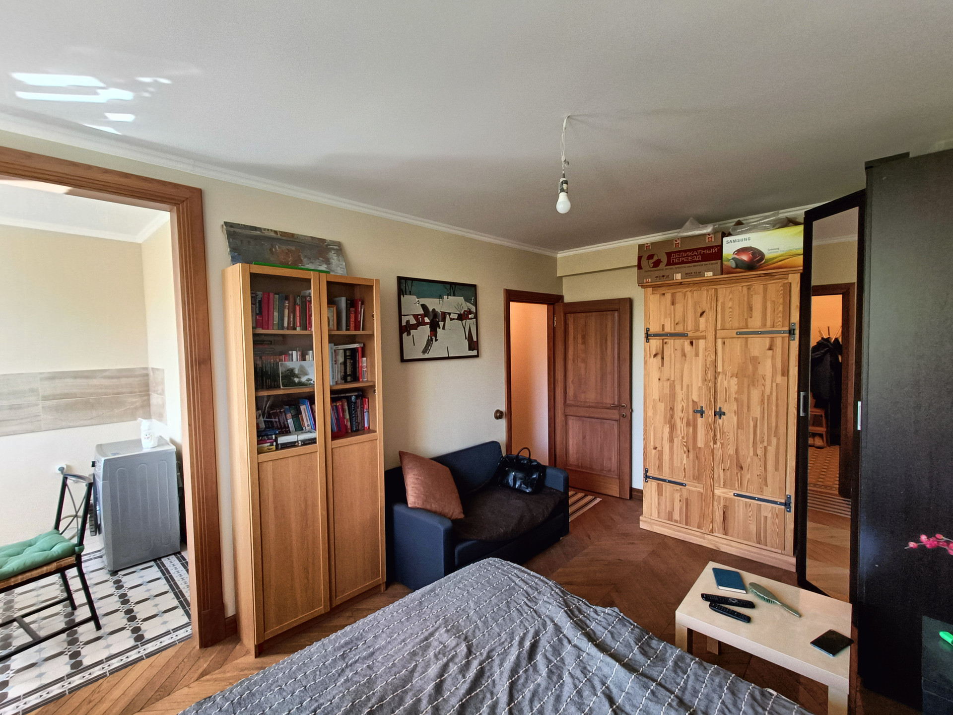 Альтернатива подобрана, один взрослый собственник, собственность этого года - ДКП (продавец приобрел, но, по семейным обстоятельствам, вынужден переехать в другой город, до этого ДКП более 5 лет), прописанных нет. Обременений, долгов и прочих сложностей - нет. Продаётся уютная, чистая однокомнатная квартира (общая площадь 31.9 метра + балкон) возле станции метро Сокол (3-4 минуты пешком). В квартире сделан качественный, дорогой ремонт - всё новое (замена электрики, сантехники, поднимались полы и делалась стяжка; пол, наличники, плинтуса, двери и прочие деревянные изделия из дуба). На полу - паркет/плитка, санузел совмещен, балкон не застеклен, имеется гардеробная/кладовая комната, новый кондиционер, уже заказан хороший кухонный гарнитур, который входит в указанную стоимость. Адекватные соседи, чистый подъезд, современный, новый лифт.