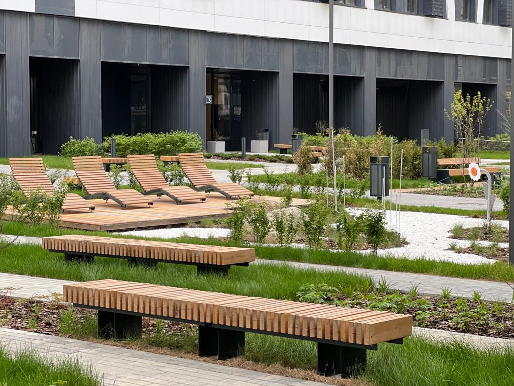 Облагороженая территория! С детскими зонами, зонами для прогулки!  Уютные лежаки, подвесные кресла, красивый ландшафтный дизайн! Всё это на территории ЖК.