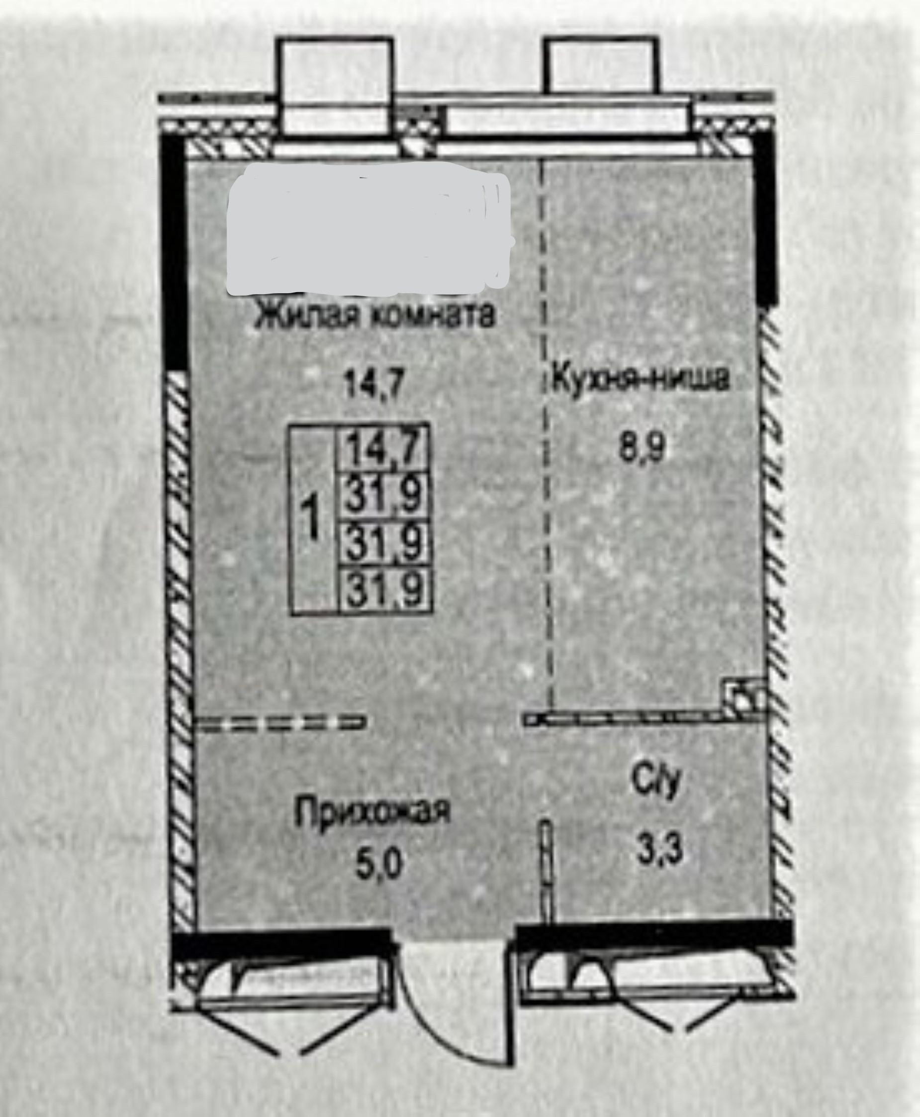 Общая площадь 31.9 м2