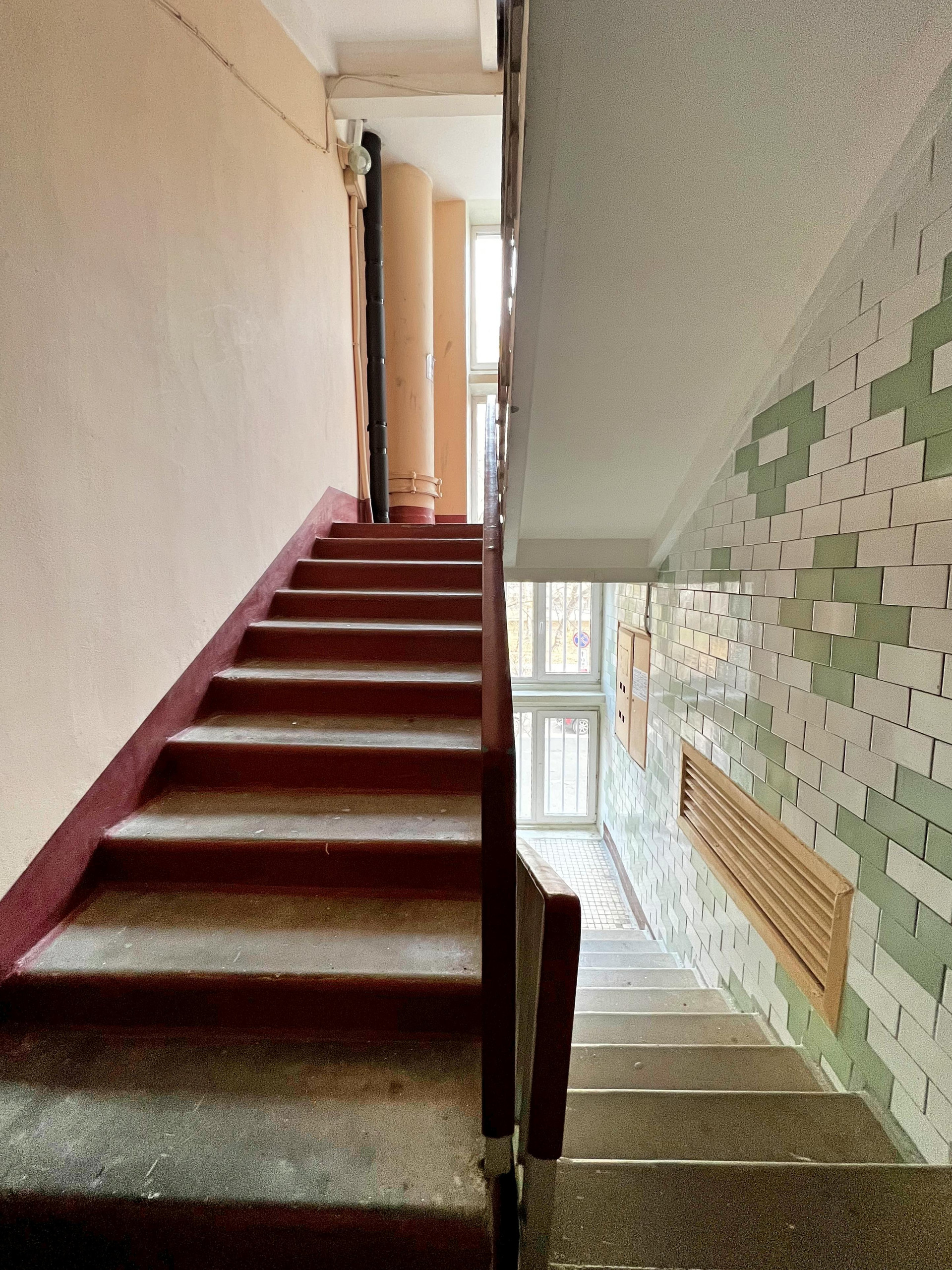 Всего 2 кв-ры на этаже, дом находится внутри квартала, очень тихо, зелено.