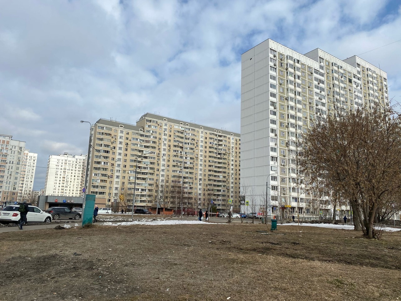 Большая придомовая территория на которой располагаются кафе, магазины, теннисный корт, спортивные площадки, детский сад и школа.