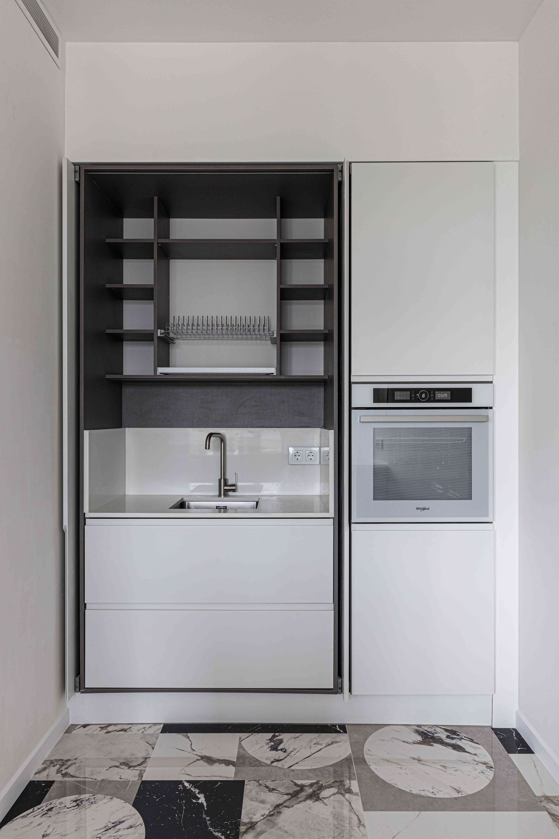 Кухня на заказ из МДФ (Россия), столешница из искусственного камня, техника Siemens (Италия).