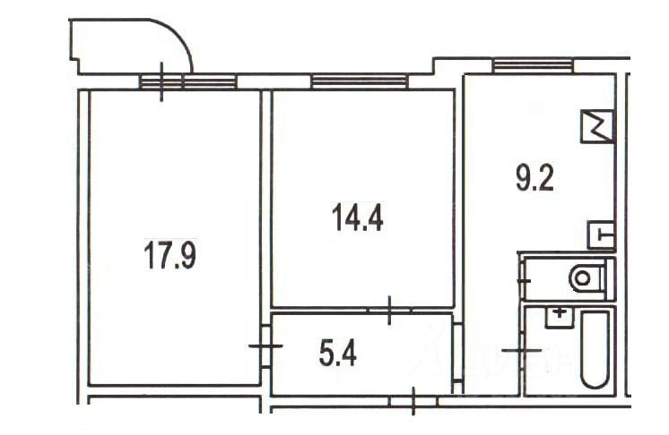 Жилая площадь 32.3 м2