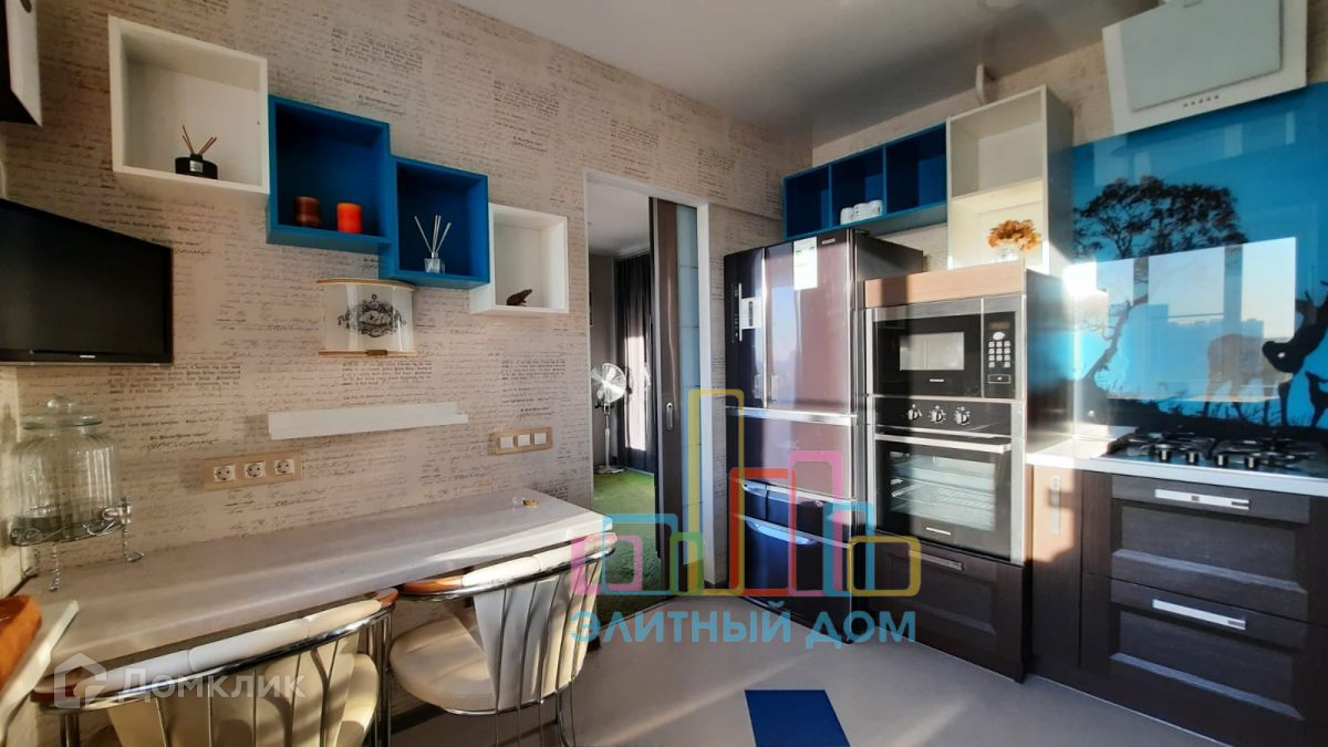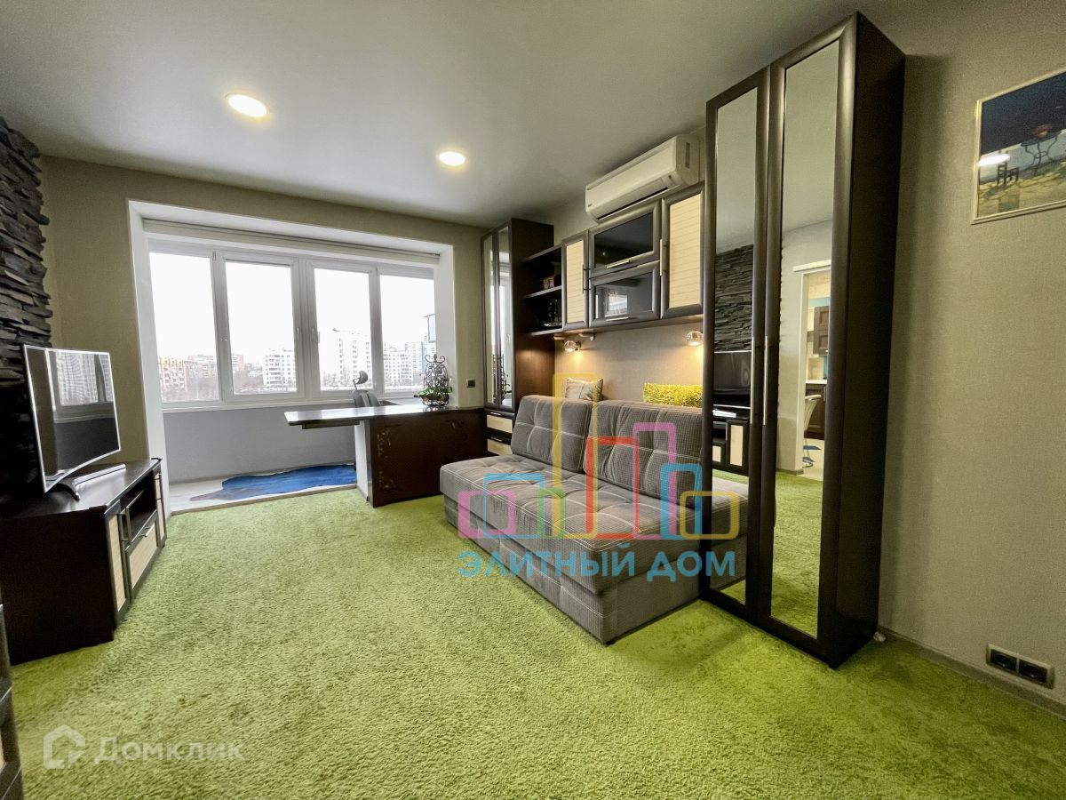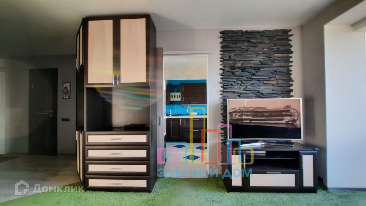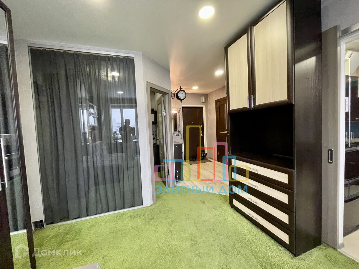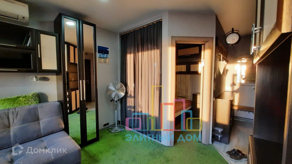 Кухня оборудована всей необходимой мебелью и бытовой техникой и изолируется сдвижной дверью. В зоне гостиной раскладной диван, большое количество шкафов и стеллажей для хранения вещей, установлен кондиционер и телевизор. Часть лоджии присоединена, утеплена и переоборудована под рабочее место с офисным креслом, предусмотрены теплые полы. Изолированная спальня.