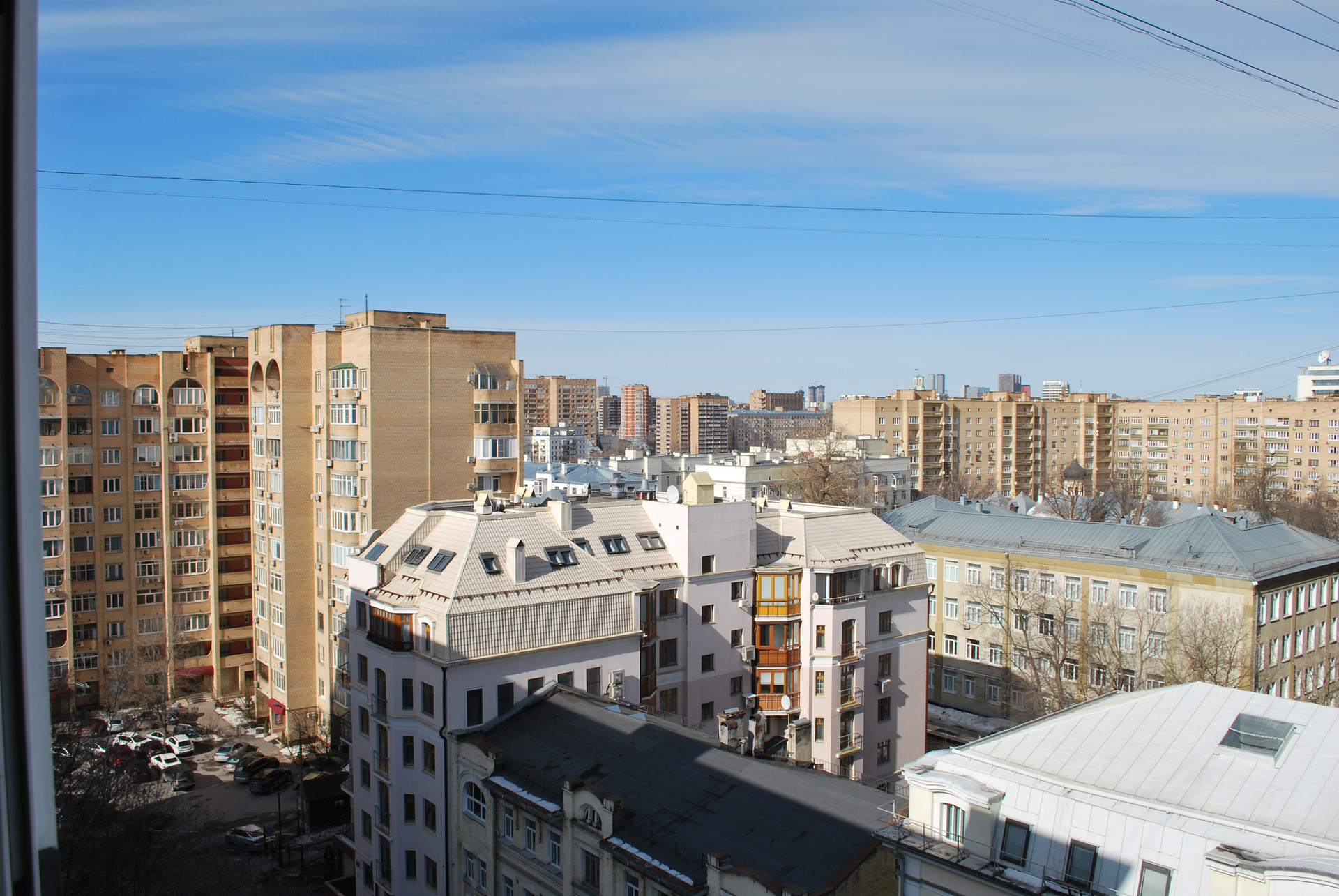 Потрясающий панорамный вид на весь центр города (включая колокольню Ивана Великого на Соборной площади Кремля) и Сити (одна комната), две комнаты и кухня выходят во двор с видом на Останкинскую телебашню.