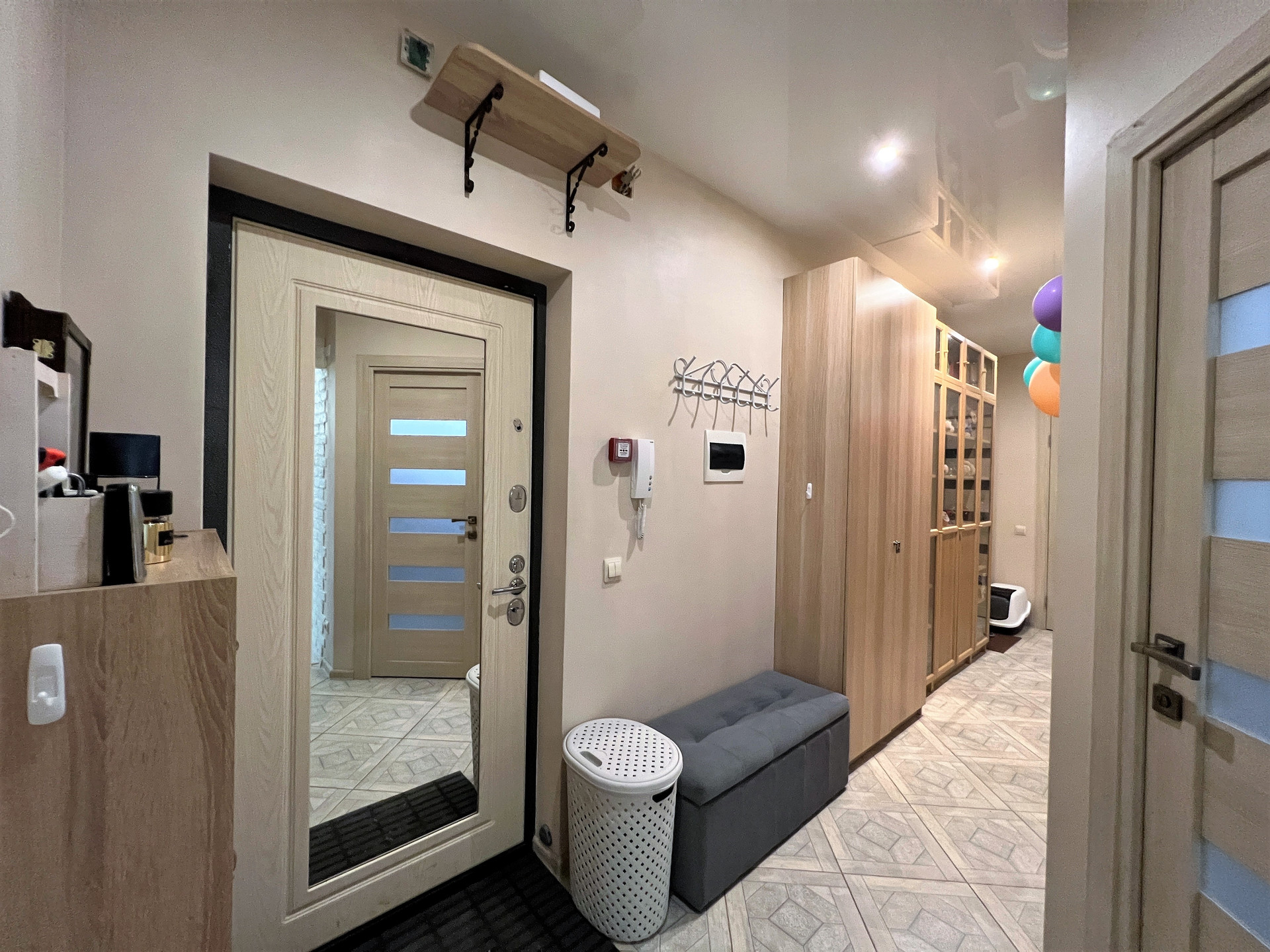 Трехкомнатная квартира в современном ЖК Wellton Park. Общая площадь 63,1кв.м., комнаты изолированные (13,7-12-10)м, кухня 11м., гардеробная, совм.санузел. В квартире выполнен качественный ремонт, деревянные стеклопакеты, теплые полы, покрытие полов выполнено: ламинат+плитка, сан/узел- кафель, потолки натяжные. Остается кухонный гарнитур с встроенной техникой (варочная панель, духовой шкаф, вытяжка, посудомоечная машина), холодильник, стиральная машина, а также остается мебель в прихожей и наполнение гардеробной (мебель и техника в отличном состоянии и включены в стоимость квартиры). Корпус расположен внутри жилого комплекса, нет шума, окна выходят в тихий двор. Консьерж 24/7, подземный паркинг, охраняемая территория. На территории ЖК есть детский сад, частная школа "Хорошкола", школа искусств, гимназия 1517 (с углубленным изучением ин. языков), детские и спортивные площадки, салоны красоты, спа, фитнес-клуб, кафе, ресторан, аптека, а также в шаговой доступности Азбука Вкуса, Вкус Вилл, МФЦ, банки, а для любителей активного отдыха Карамышевская набережная и заповедник Серебряный Бор. Отличная транспортная доступность: на авто всего 5 мин до ТТК , 10 мин до Москва-Сити и Садового кольца. До метро Народное Ополчение не более 10 мин пешком по подземному переходу. Свободная продажа, полная стоимость в договоре.