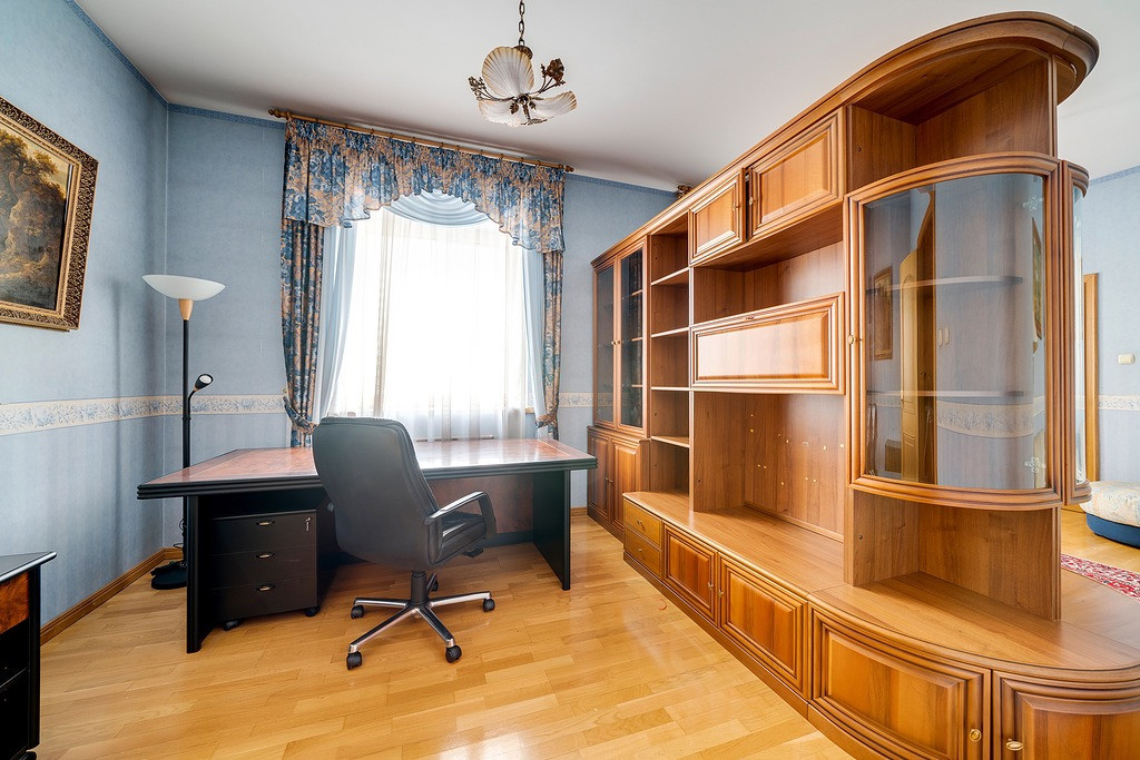 Предлагаемая к продаже квартира имеет удобную функциональную планировку: гостиная, две спальни, кабинет, три санузла, хозяйственная комната (прачечная), веранда (летняя комната), просторная прихожая и коридор-библиотека. Также имеется огромная, утепленная терраса,в которой можно сделать дополнительную спальню.