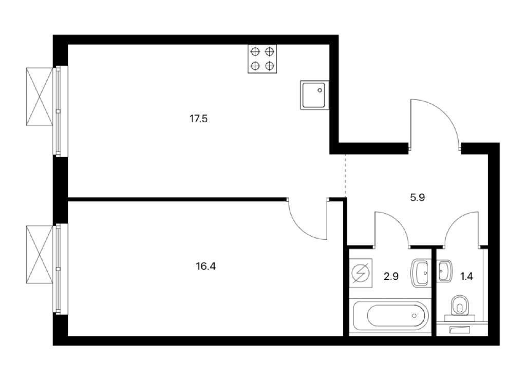 1-комнатная квартира, 44.25 м2, этаж 33 / 33, на продажу в Москве