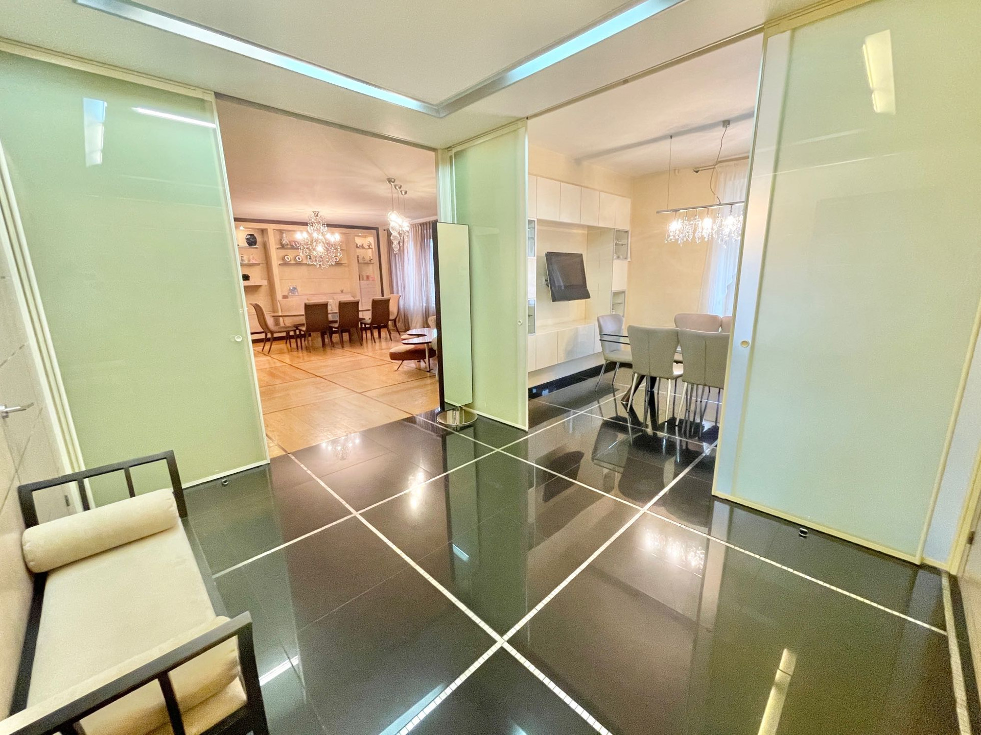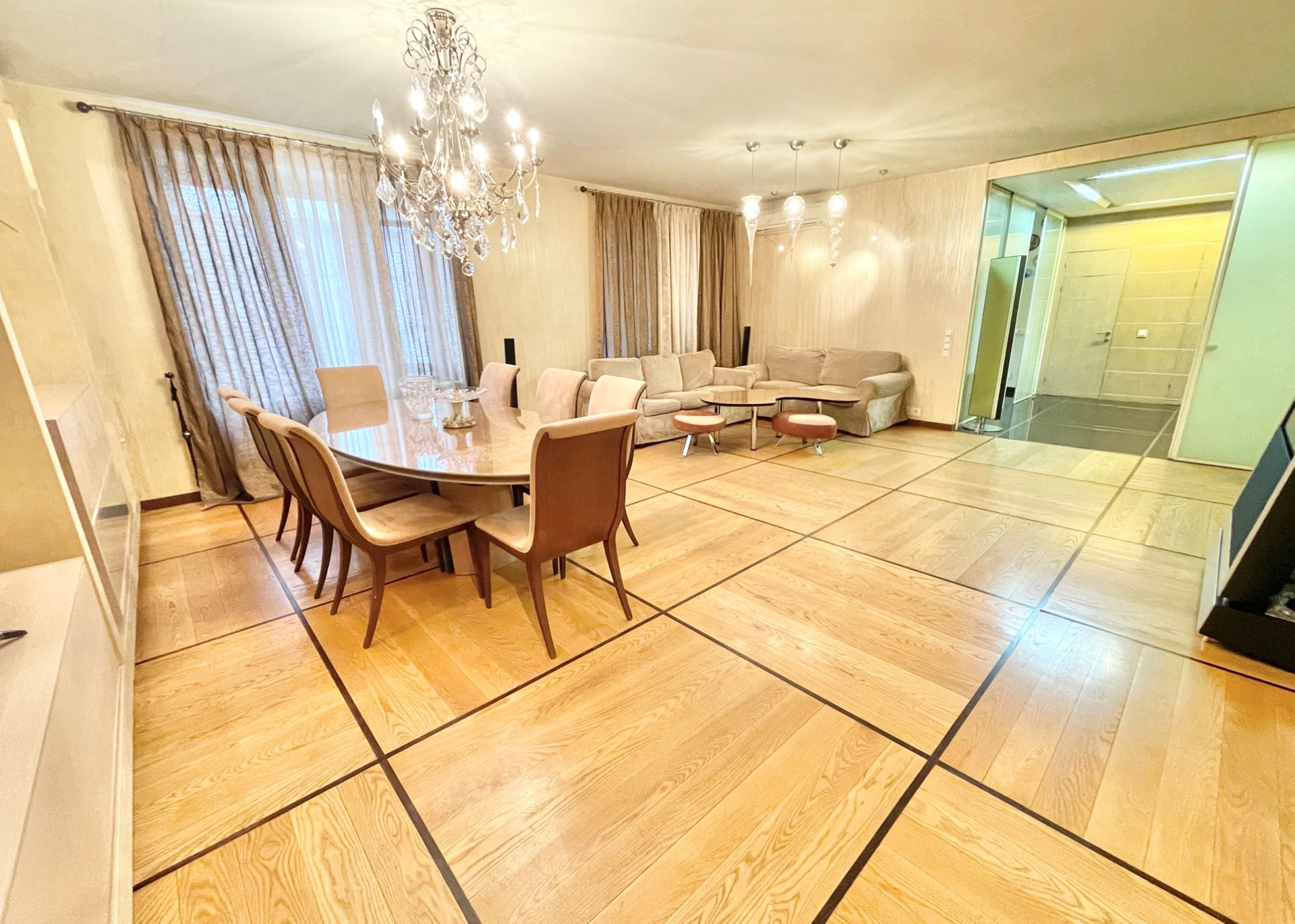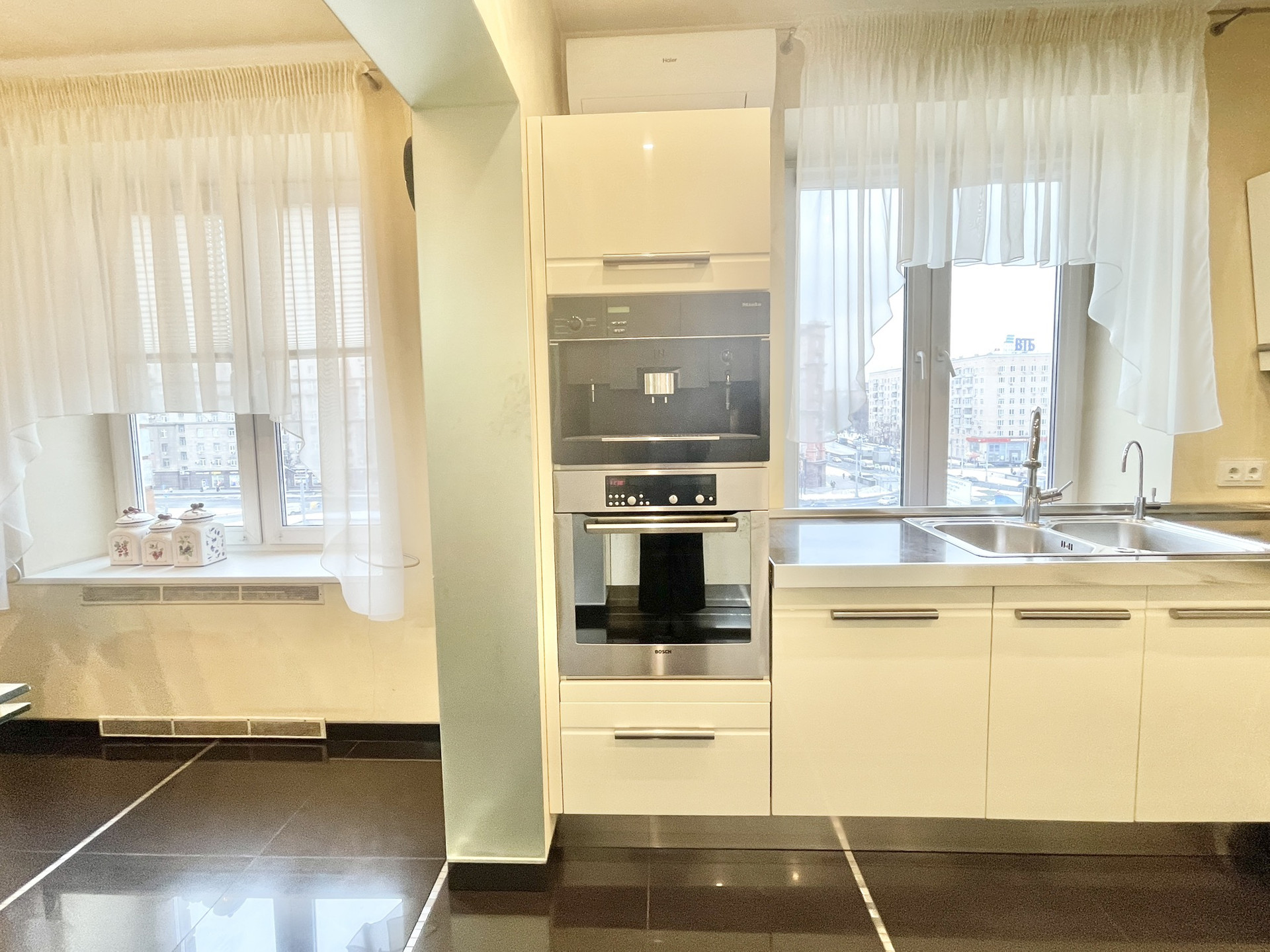 О РЕМОНТЕ. В квартире выполнен качественный ремонт: выполнена шумо и звукоизоляция по всей квартире, на стенах матовая фактурная штукатурка, на пол уложен дубовый паркет и керамогранит, встроенная кухня Del tongo со столешницей из кварцита со всей необходимой бытовой техникой Miele , Bosch, Siemens, включая посудомоечную машину, встроенная итальянская мебель Lago, тёплые полы Electrolux, кондиционеры, продумано освещение. ВСЯ ВСТРОЕННАЯ МЕБЕЛЬ И ТЕХНИКА ОСТАЮТСЯ. Имеются все проекты, которые мы передадим покупателю. Тихо, не слышно соседей.