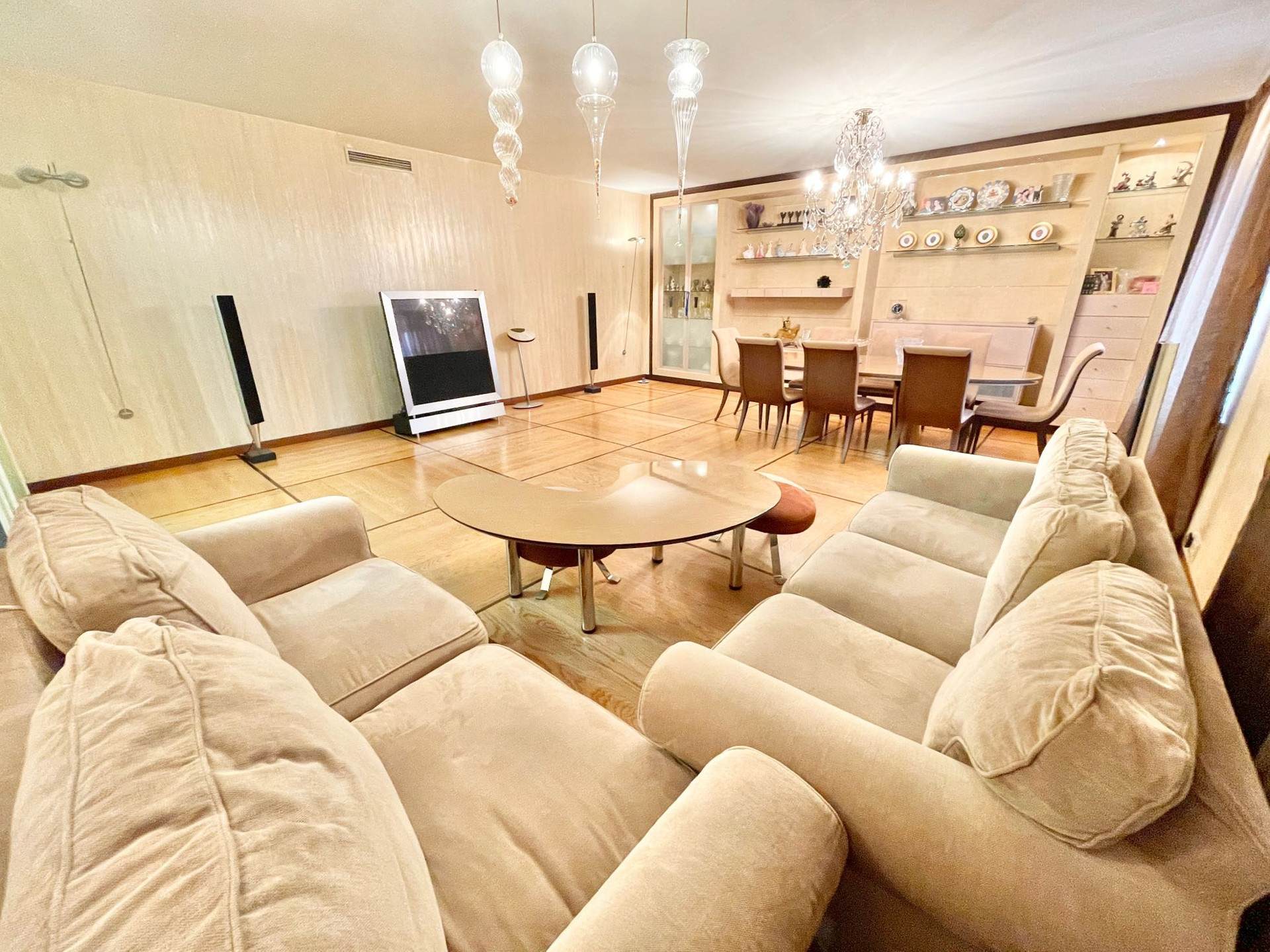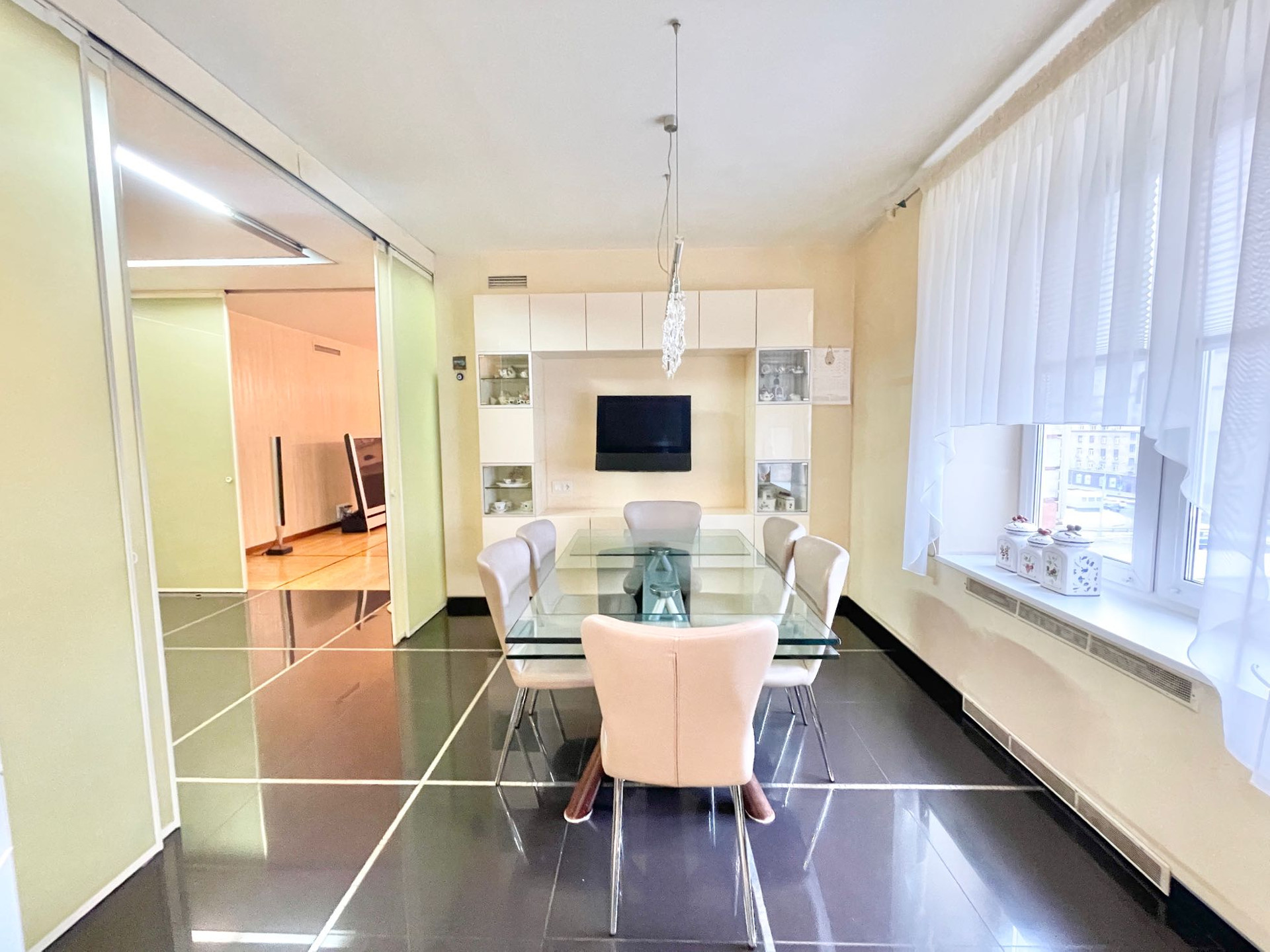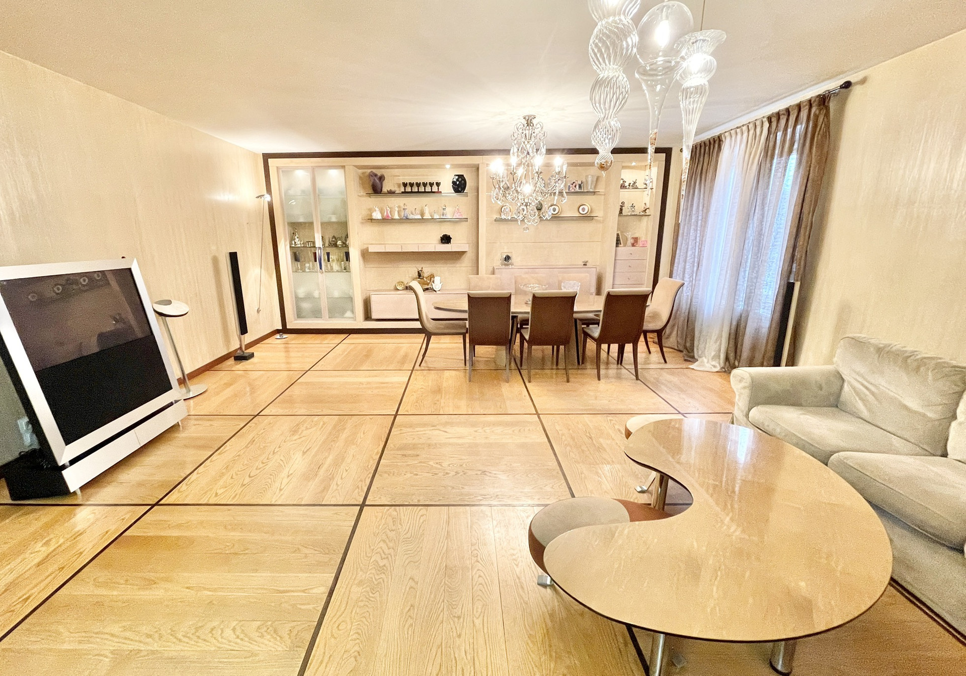 О РЕМОНТЕ. В квартире выполнен качественный ремонт: выполнена шумо и звукоизоляция по всей квартире, на стенах матовая фактурная штукатурка, на пол уложен дубовый паркет и керамогранит, встроенная кухня Del tongo со столешницей из кварцита со всей необходимой бытовой техникой Miele , Bosch, Siemens, включая посудомоечную машину, встроенная итальянская мебель Lago, тёплые полы Electrolux, кондиционеры, продумано освещение. ВСЯ ВСТРОЕННАЯ МЕБЕЛЬ И ТЕХНИКА ОСТАЮТСЯ. Имеются все проекты, которые мы передадим покупателю. Тихо, не слышно соседей.
