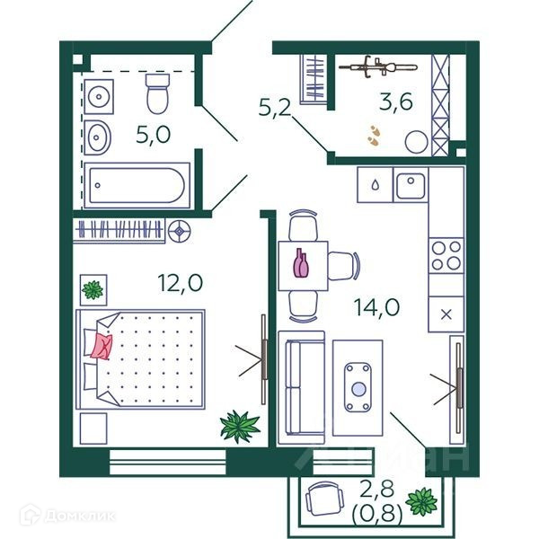 Общая площадь 40.6 м2