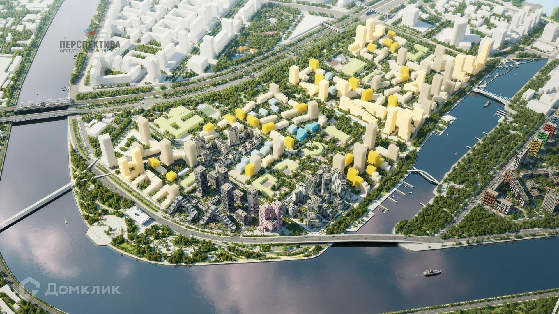 Комплекс расположен вдоль Москвы-реки и набережной Марка Шагала. Отличную транспортную доступность обеспечивает прямой выезд на ТТК и развитая сеть общественного транспорта. Менее 3 км — от строящегося музейного центра «Эрмитаж-Москва», спортивного кластера «Парк легенд», ТЦ «Ривьера» и бизнес-кластера Nagatino i-Land. В 1,5 км находится Культурный центр ЗИЛ и Лаборатория современного театра. Также в шаговой доступности парк развлечений «Остров Мечты».