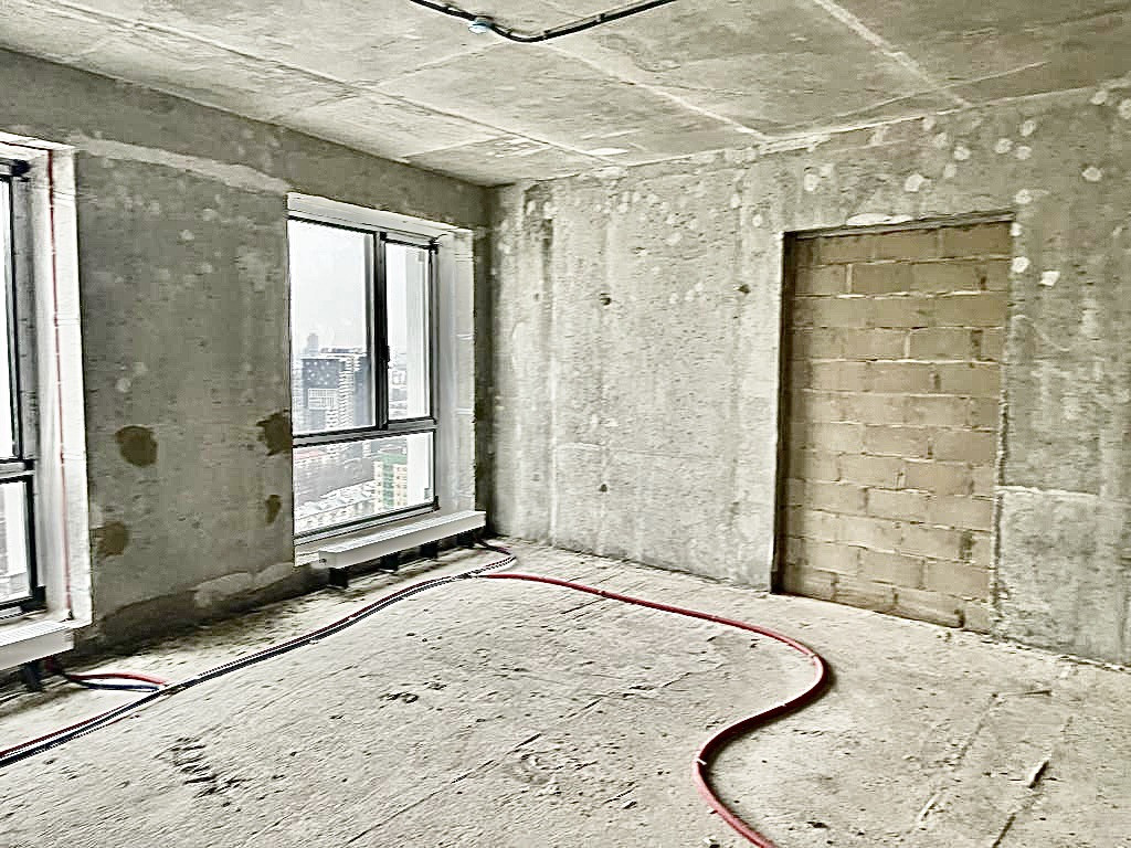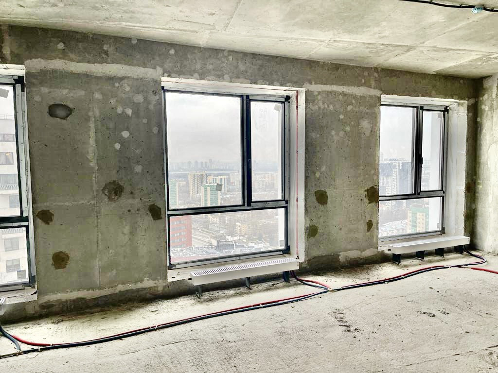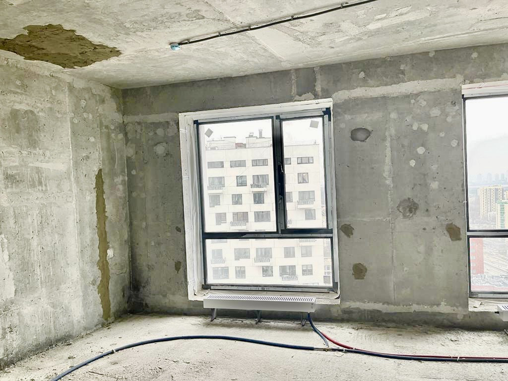 Квартира без отделки. Из окон открывается прекрасный вид на город.