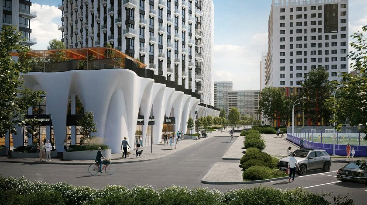 В стилобатной части комплекса работают магазины, рестораны и супермаркет «Глобус Гурмэ». В пешей доступности находится инновационная частная гимназия «Хорошкола» с углубленным изучением физико-математических и естественных наук. В гимназии есть спортивный блок с бассейном и залами, современная библиотека, научно-инженерный кампус, арт-студия и 4-этажный атриум с прозрачным куполом.
