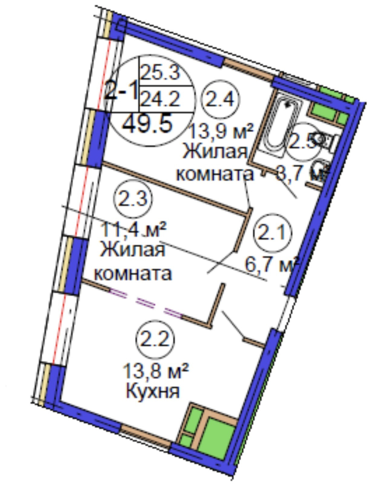 - Панорамное остекление. Низкие подоконники. Высота потолка 3,1 м.