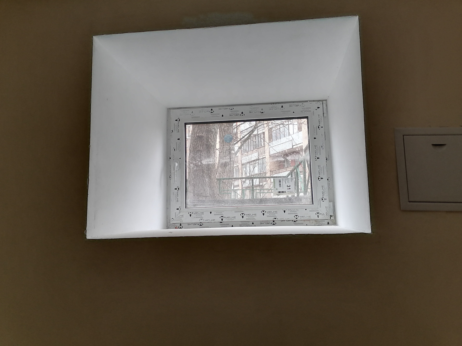 Окно пластиковое с очистителем воздуха, на окне автоматические рольставни