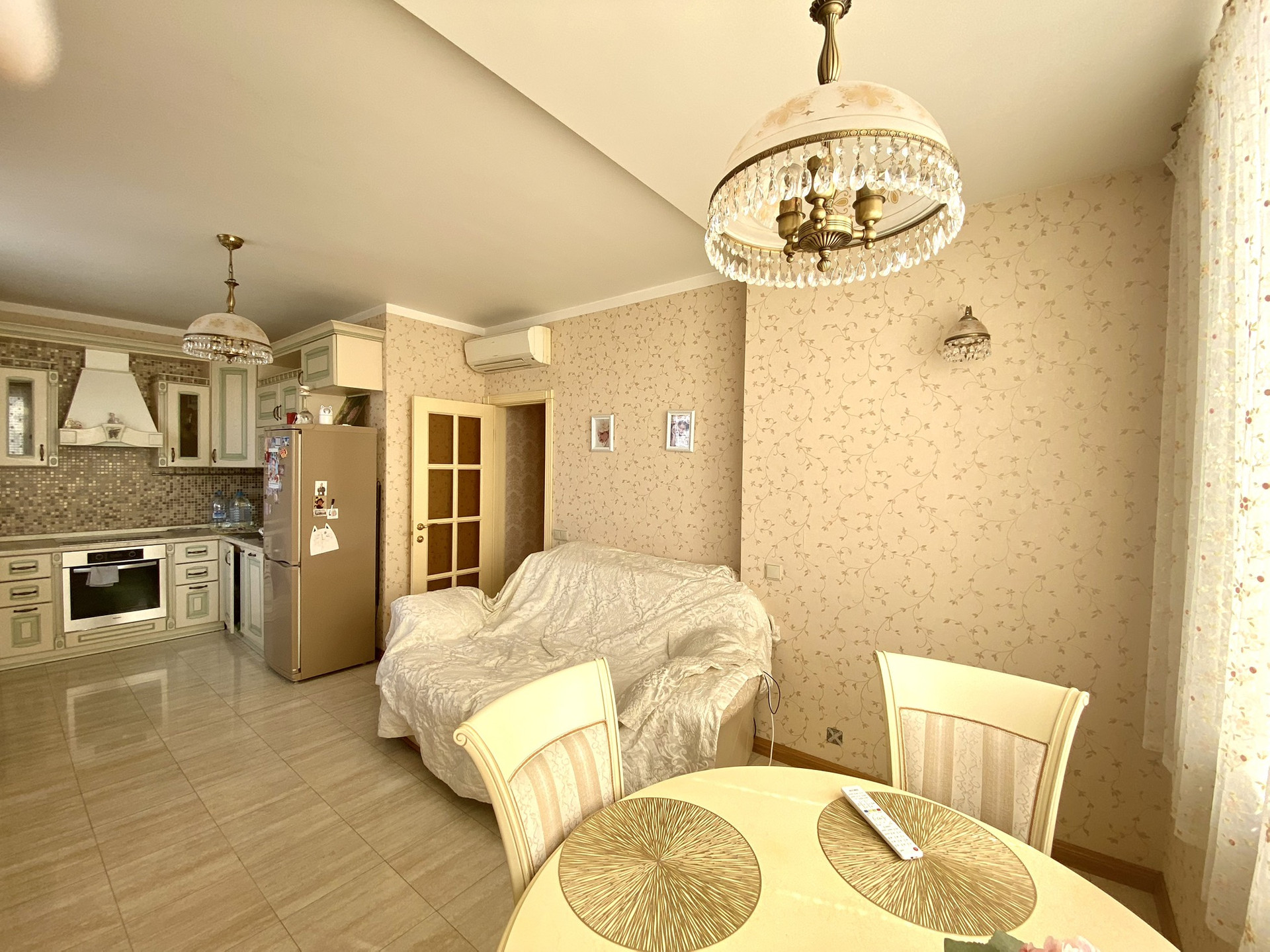 В квартире осуществлен современный, дизайнерский ремонт из высококачественных материалов: Окна пластиковые двухкамерные стеклопакеты ,современные радиаторы отопления, пол комбинированный: кухня-гостиная, коридор, сан.узел, плитка керама марацци, комната- единая паркетная доска, установлен теплый пол ( на кухне три независимые друг от друга зоны, коридор, ванная), стены флизелиновые обои, потолок влагостойкий гипсокартон с дополнительным освещением, двери из натурального дерева (дуб) с керамической фурнитурой, в сан.узлах установлены датчики воды, система блокировки протечки, противопожарная дверь с горизонтальным и вертикальным закрытием, домофон. В квартире остаётся: встроенная кухня (материал-дерево дуб) со всей техникой Miely (плита, встроенные духовой шкаф, микроволновая печь, вытяжка, посудомоечная машинка, два кондиционера-митцубиши), в комнате- шкаф; в коридоре встроенные шкафы, в сан.узле- немецкое сан. тех. оборудование, комод, зеркало с подсветкой. Общая площадь 46.1 метра, кухня-гостиная 16.6 метра, коридор 8.2 метра, совмещённый с/у 3.6 метра, комната 17.7 метра. Развитая инфраструктура, все в шаговой доступности: метро Отрадное в 18 минутах ходьбы, магазины, аптека, школа и детский сад во дворе, напротив дома автобусная остановка с транспортом по городу, удобный выезд на МКАД.