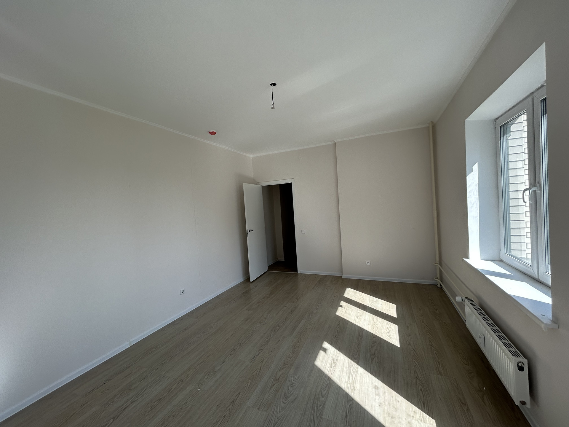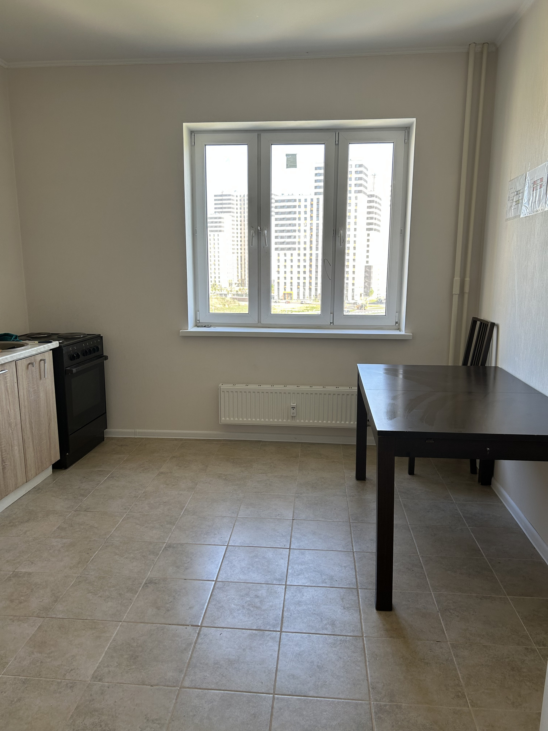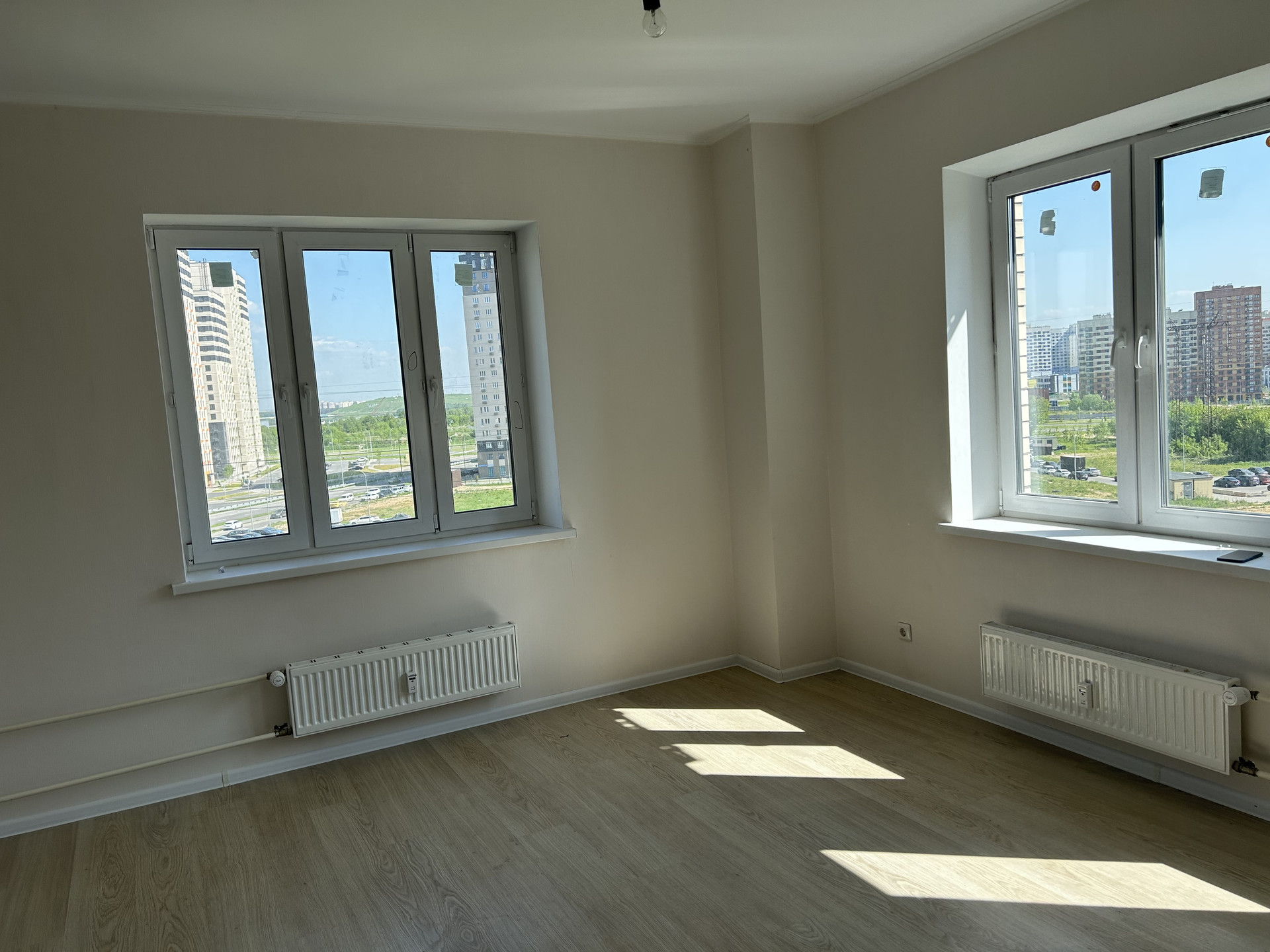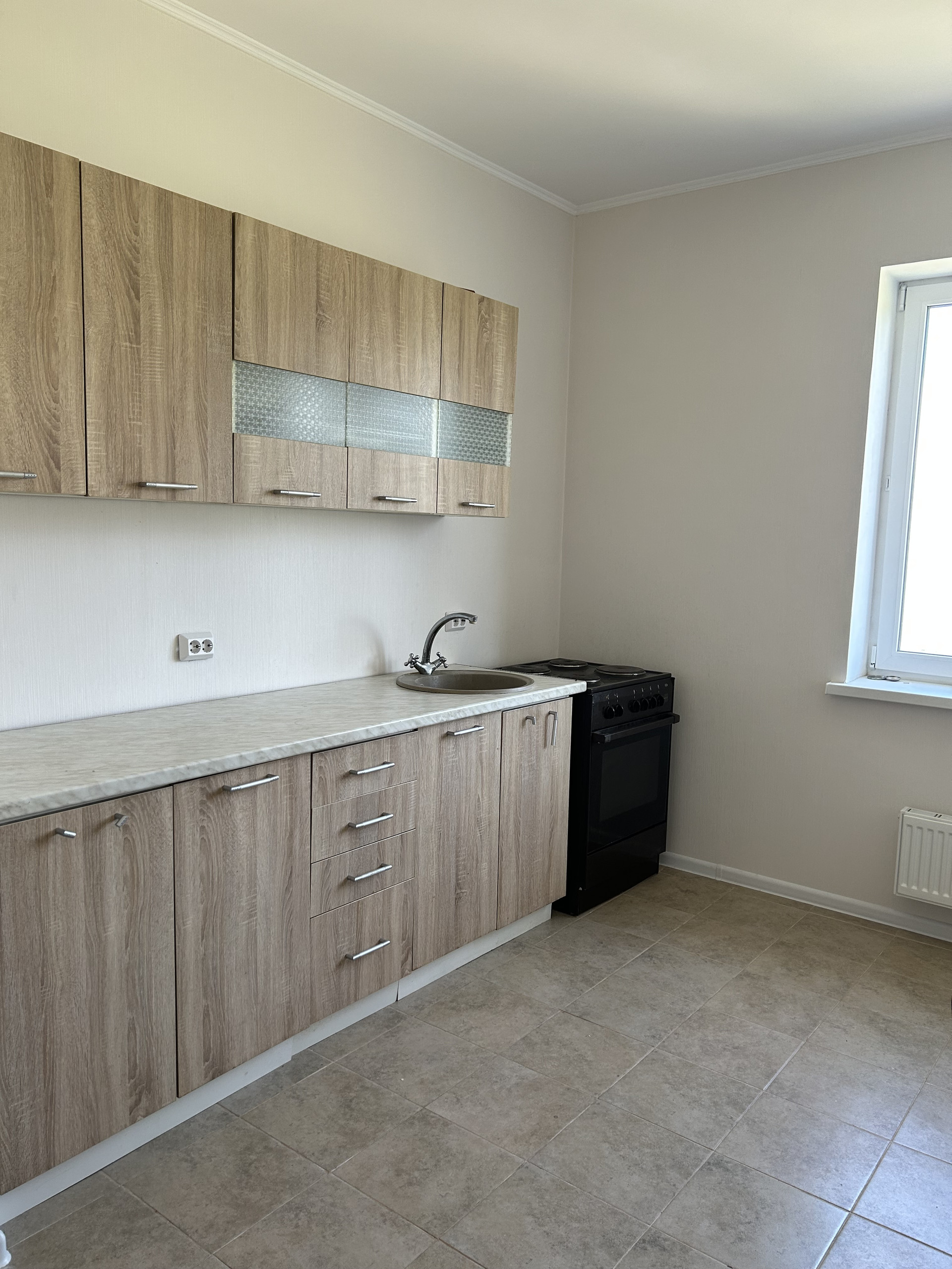 В квартире выполнен ремонт в теплых тонах. Установлена кухня. Очень светлая за счет множества окон.