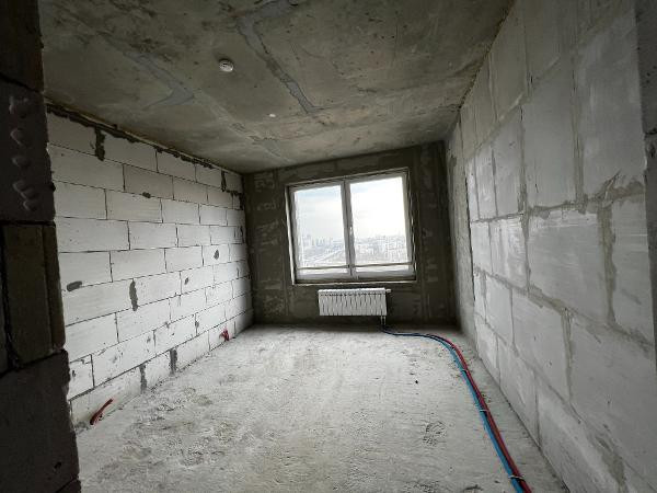 Квартира расположена на 19-ом этаже, общая площадь 108,8 кв.м., жилая 66,2 кв.м, . кухня  6 кв.м., 2 балкона . Очень светлая за счет большого квадратного окна. Состояние - без отделки.