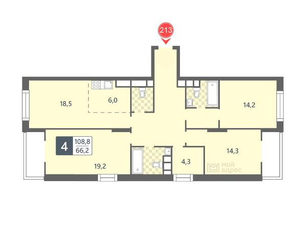 Общая площадь 108.8 м2
