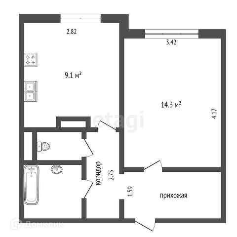 Площадь кухни 9.1 м2