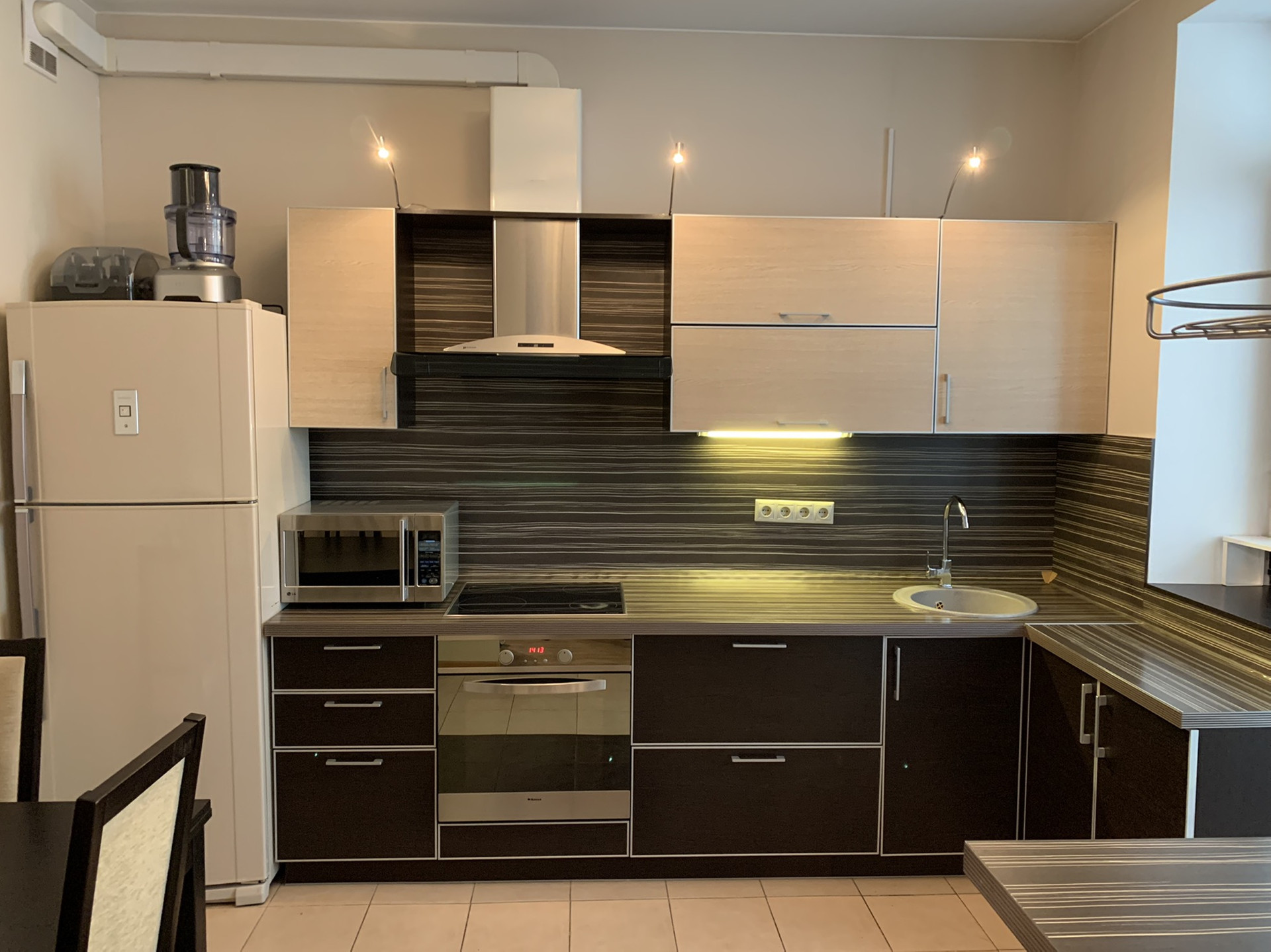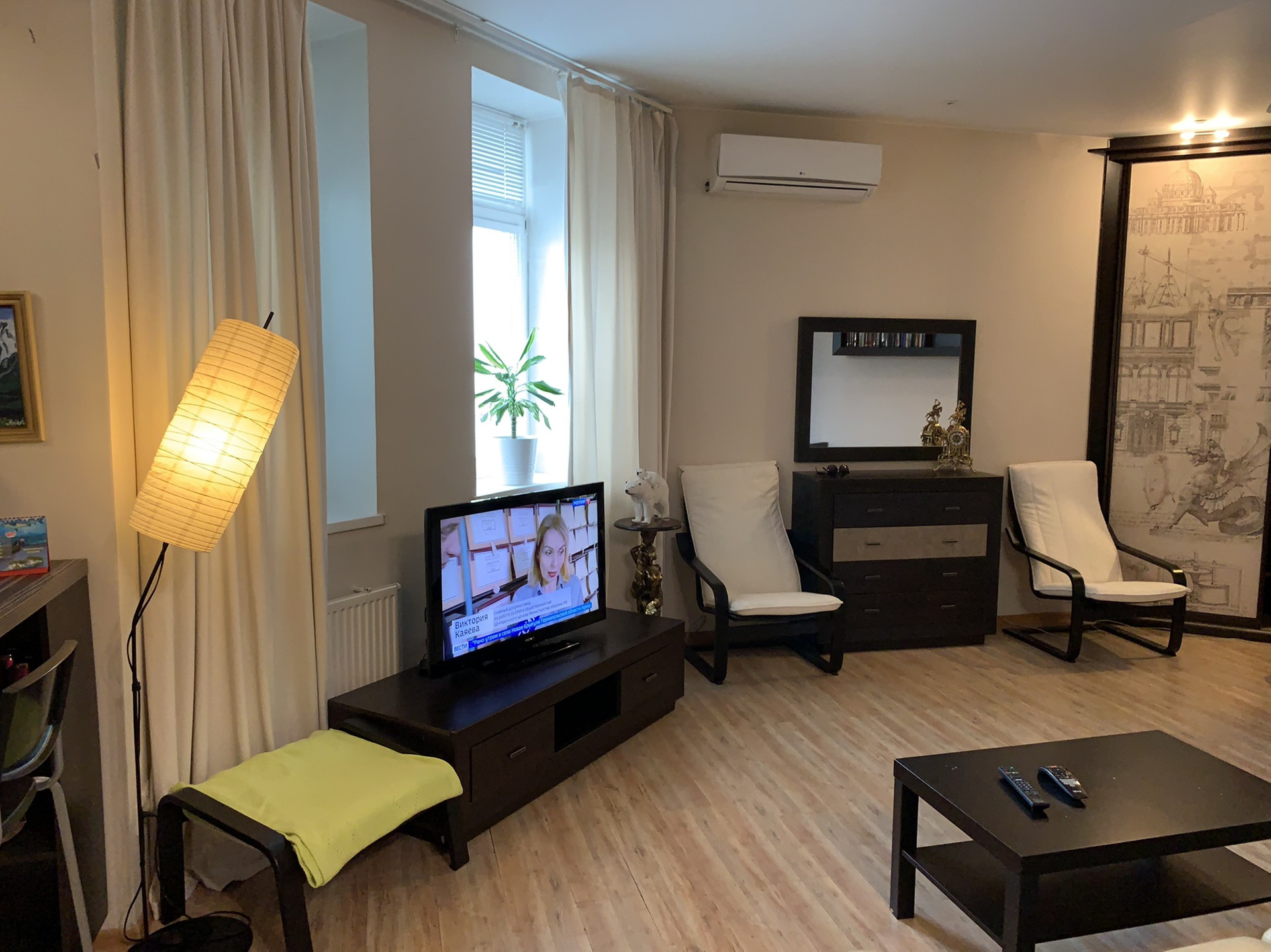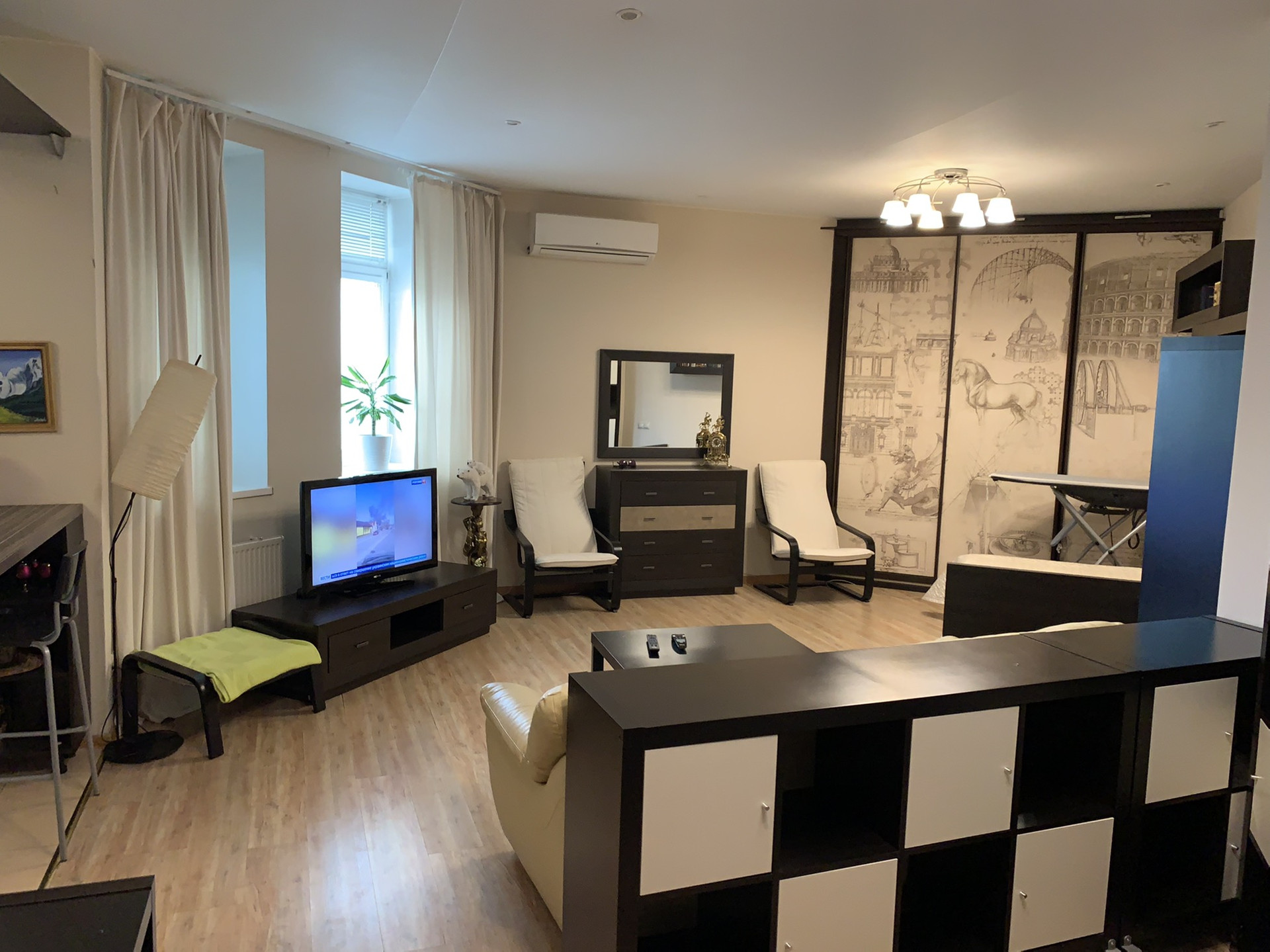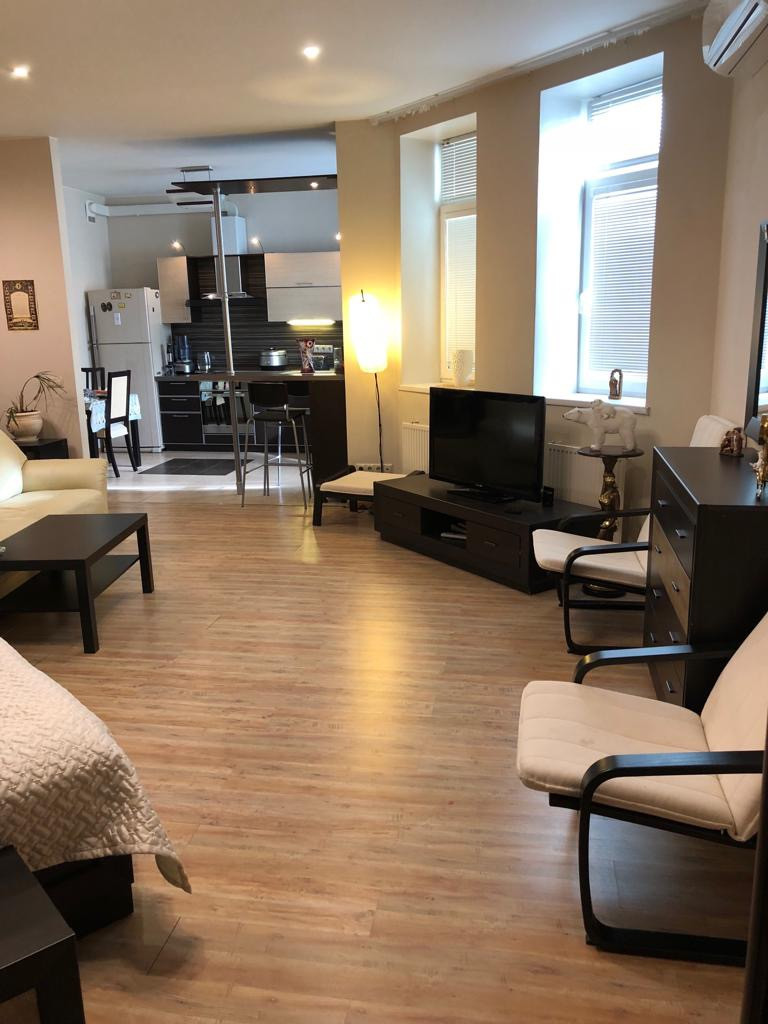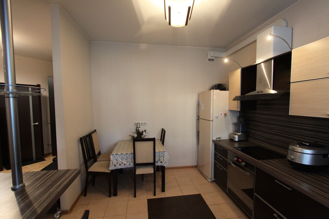 В квартире есть абсолютно всё необходимое,  кондиционер, тёплый пол, встроенная кухня с техникой, мебель, бытовая техника, и т.д.