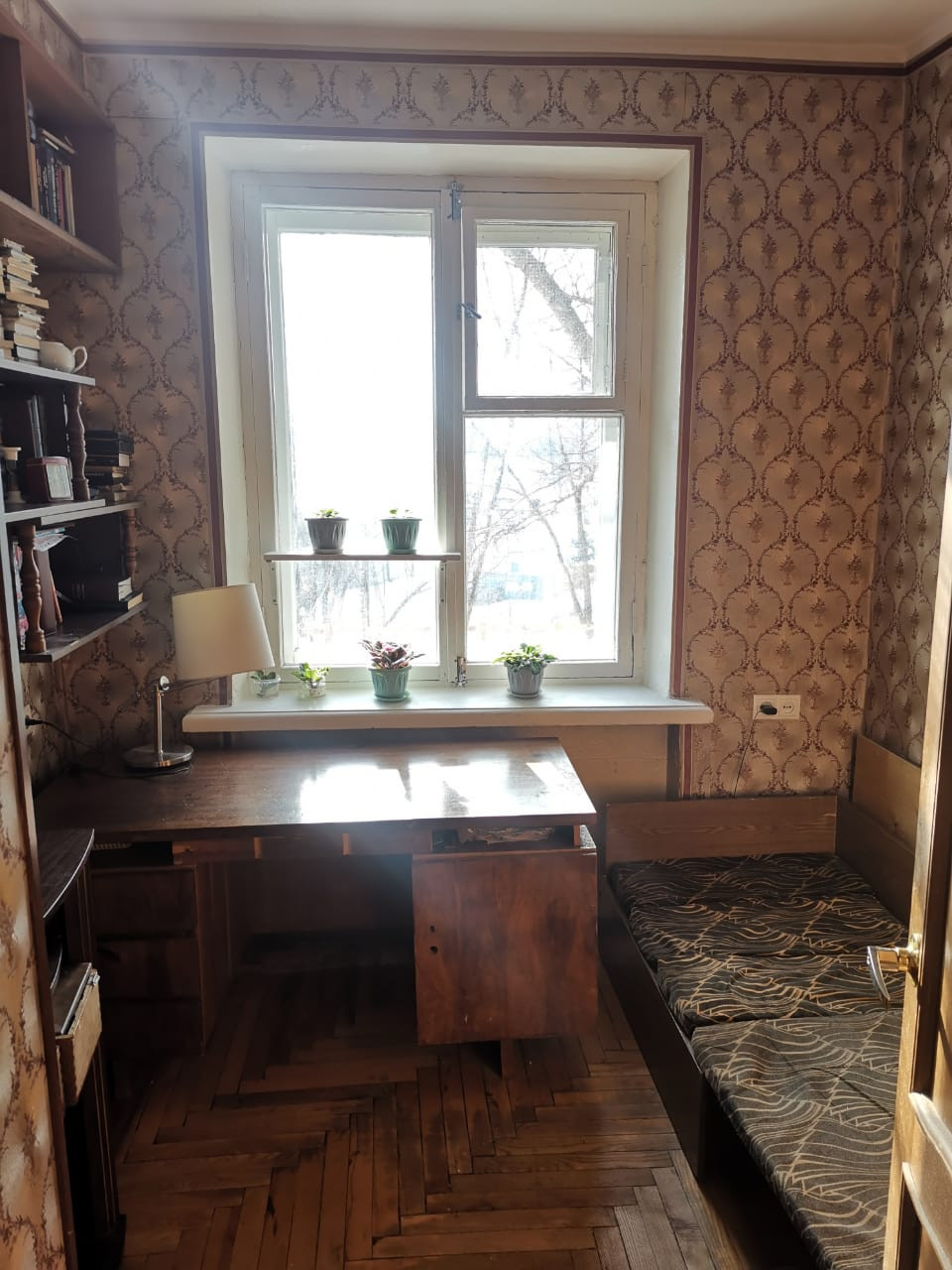 Квартира в кирпичном доме, очень тёплая и светлая. Потолки 2,7 м., толщина наружных стен 50 см., окна выходят на юг, в сторону парка "Академический".