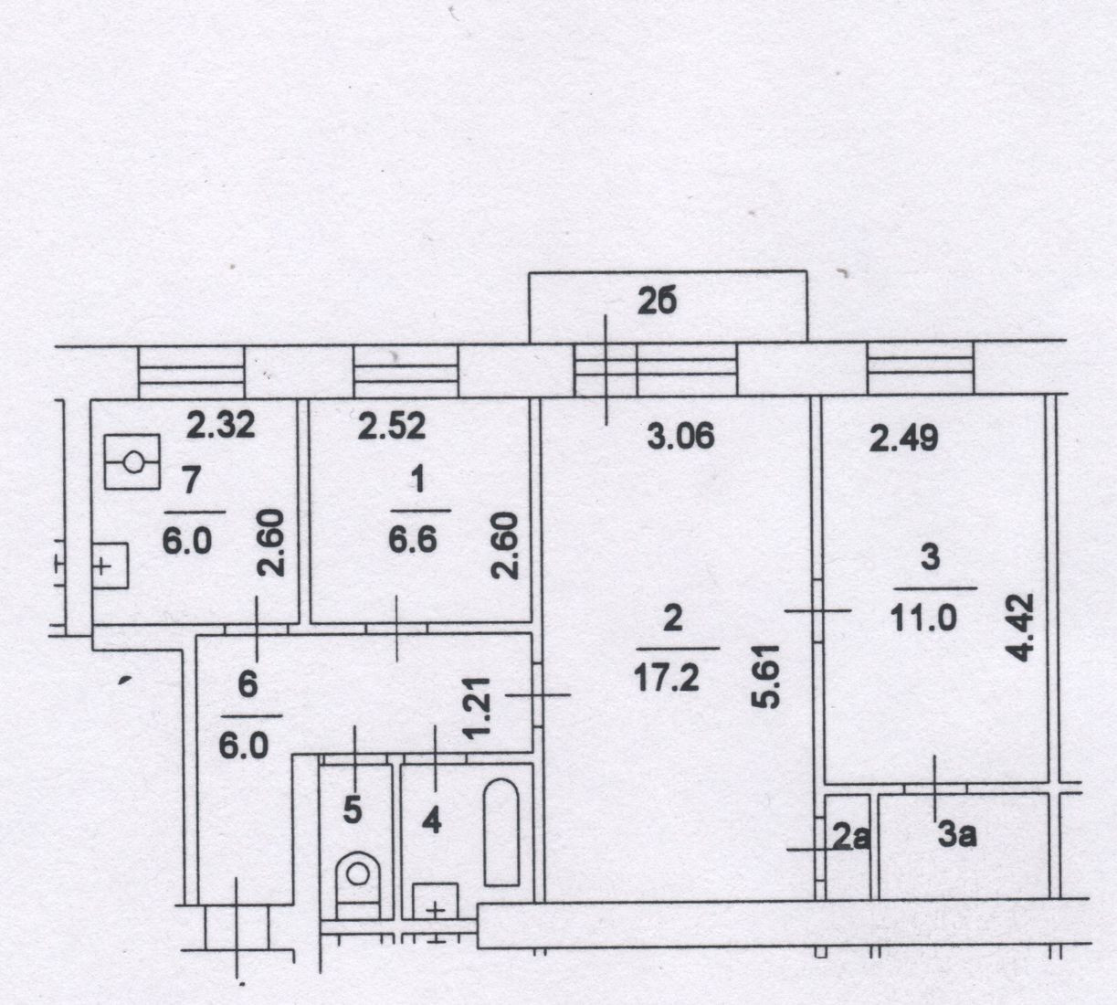 Общая площадь 53.2 м2