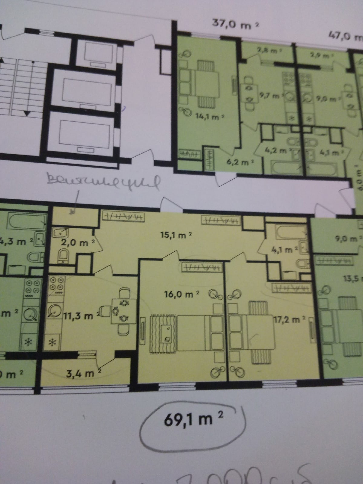 Общая площадь 70 м2