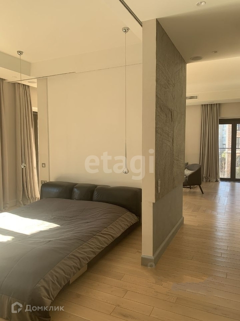 - гостиная с кухней 43 м2, спальня отделена каменной перегородкой с возможностью установки выездных панелей 12 м2, детская 19 м2- с/у с душевой и ванной - гардеробная с возможностью установки стиральной и сушильной машинок.