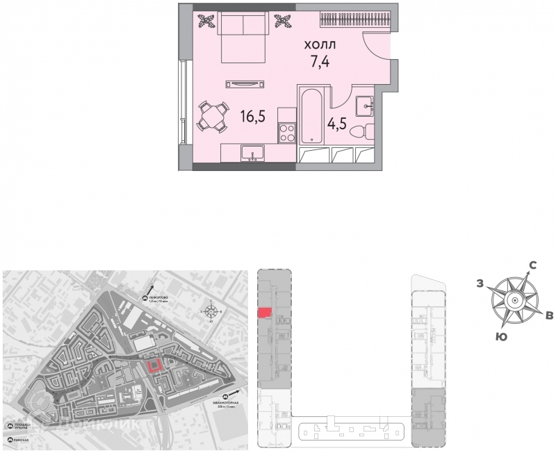 1-комнатная квартира, 29.2 м2, этаж 6 / 16, на продажу в Москве, проезд Невельского, 3к1