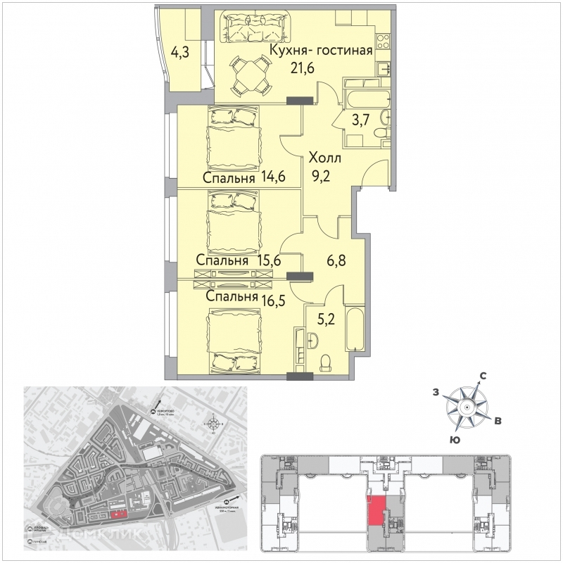 Количество комнат 3