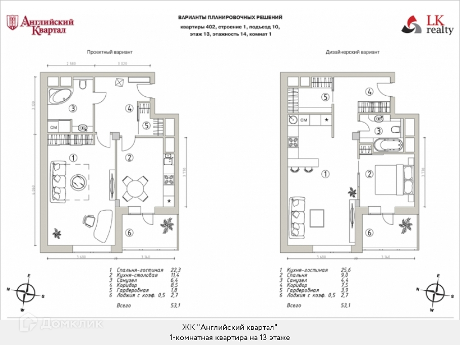 Корпус 1 в ЖК "Английский квартал", в котором находится квартира, совсем новый, построен в 2013 году. Дом монолитно-блочный, в корпусе 22 подъезда, есть 1 пассажирский и 1 грузовой лифт.