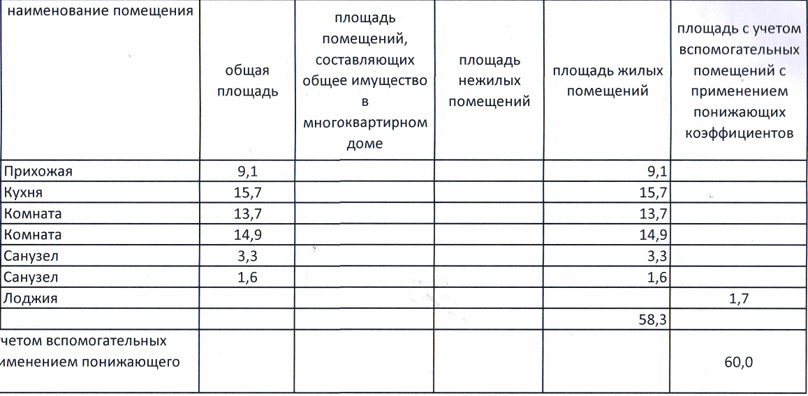 Общая площадь 60 м2