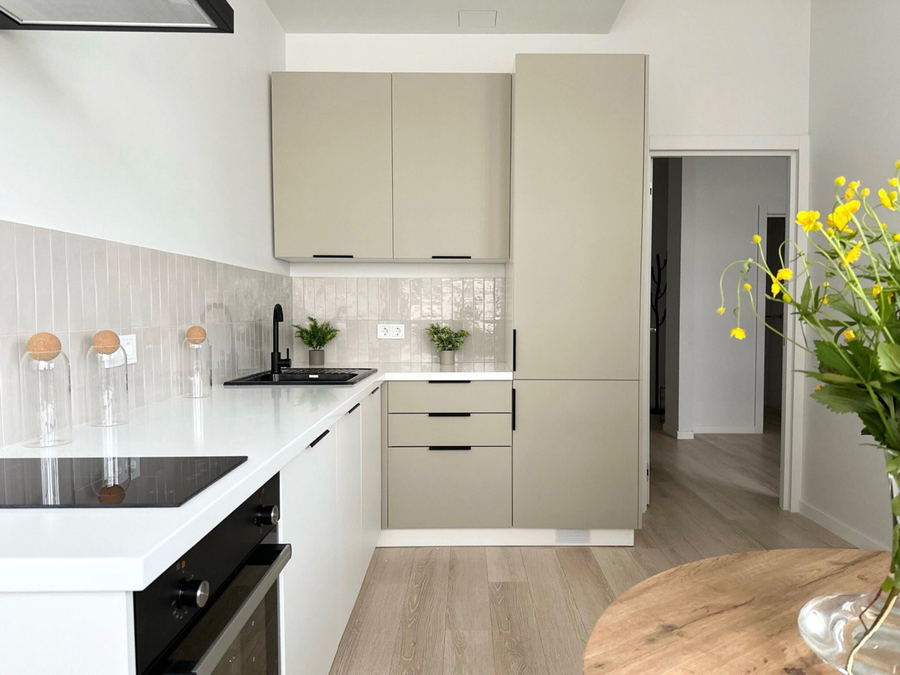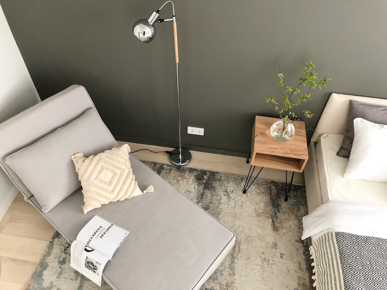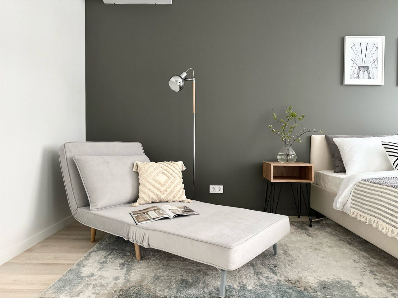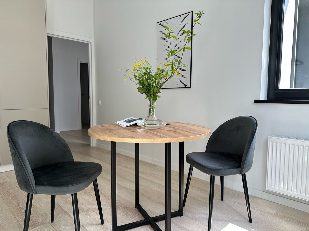 Стильная кухня укомплектована всей необходимой техникой, с рабочей поверхностью из камня. В комнате и гардерабной закуплена вся современная мебель.
